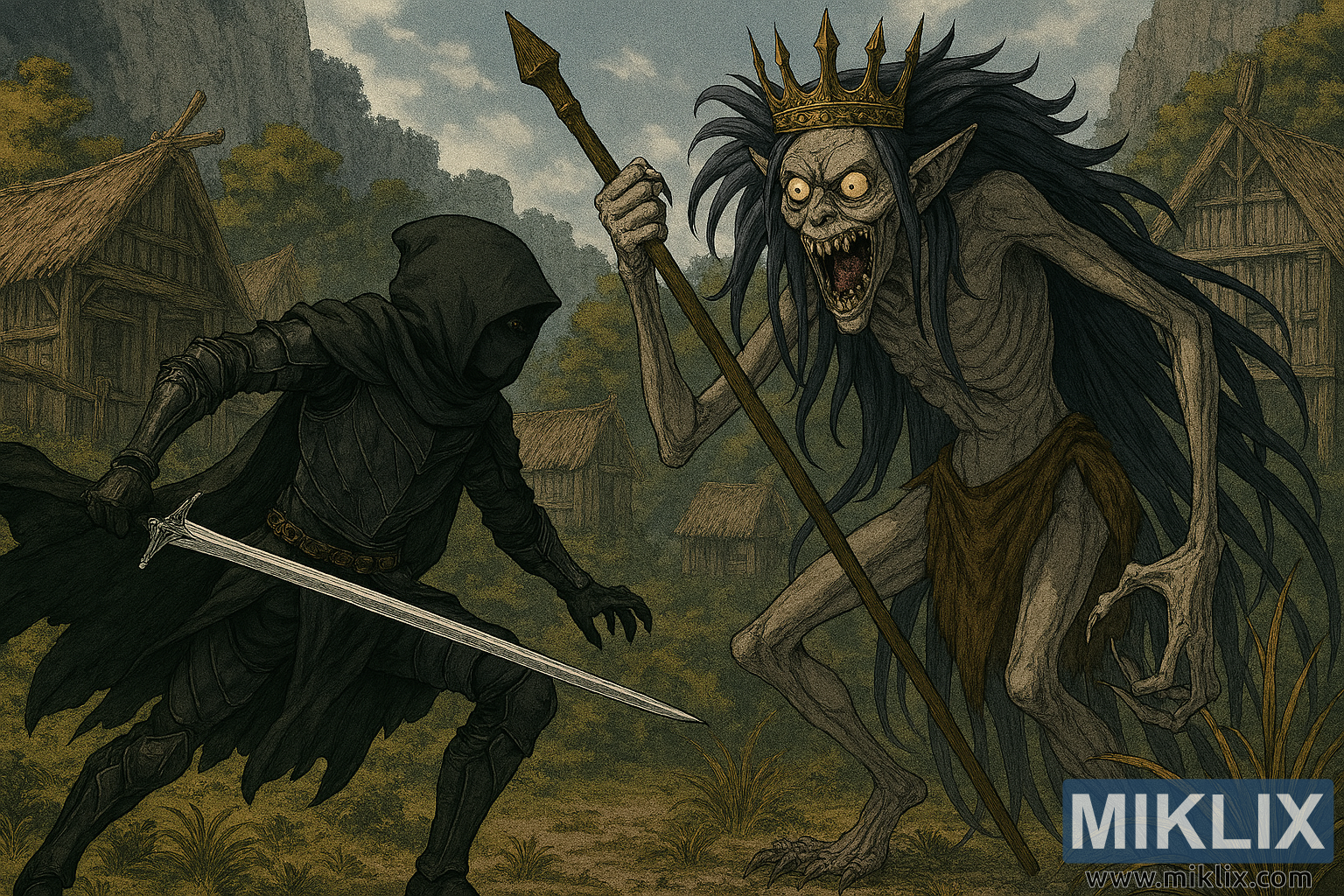 Image: Tarnished vs Demi-Human Queen Maggie in Hermit Village