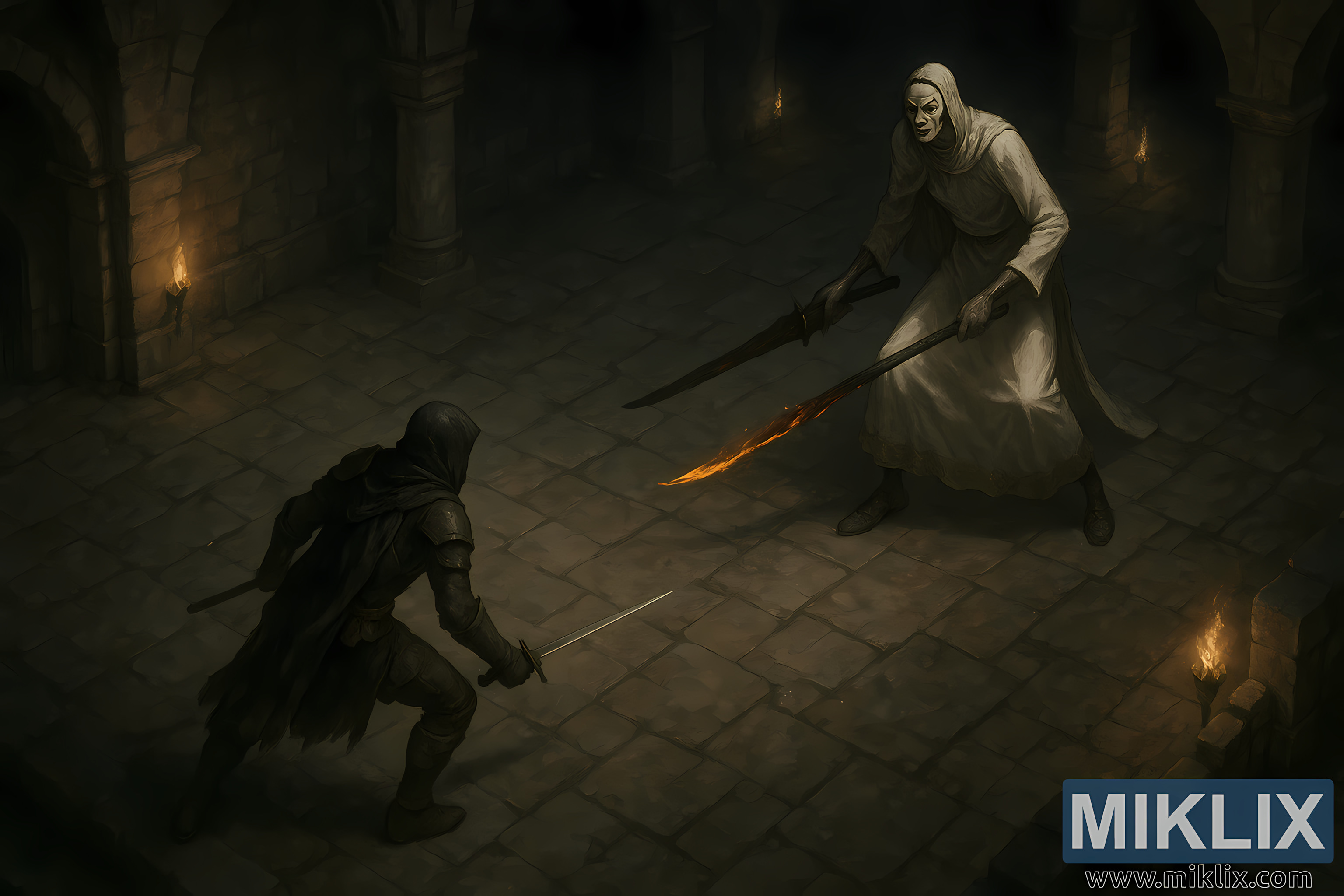 Image: Realistic Isometric Duel: Tarnished vs. Godskin Apostle