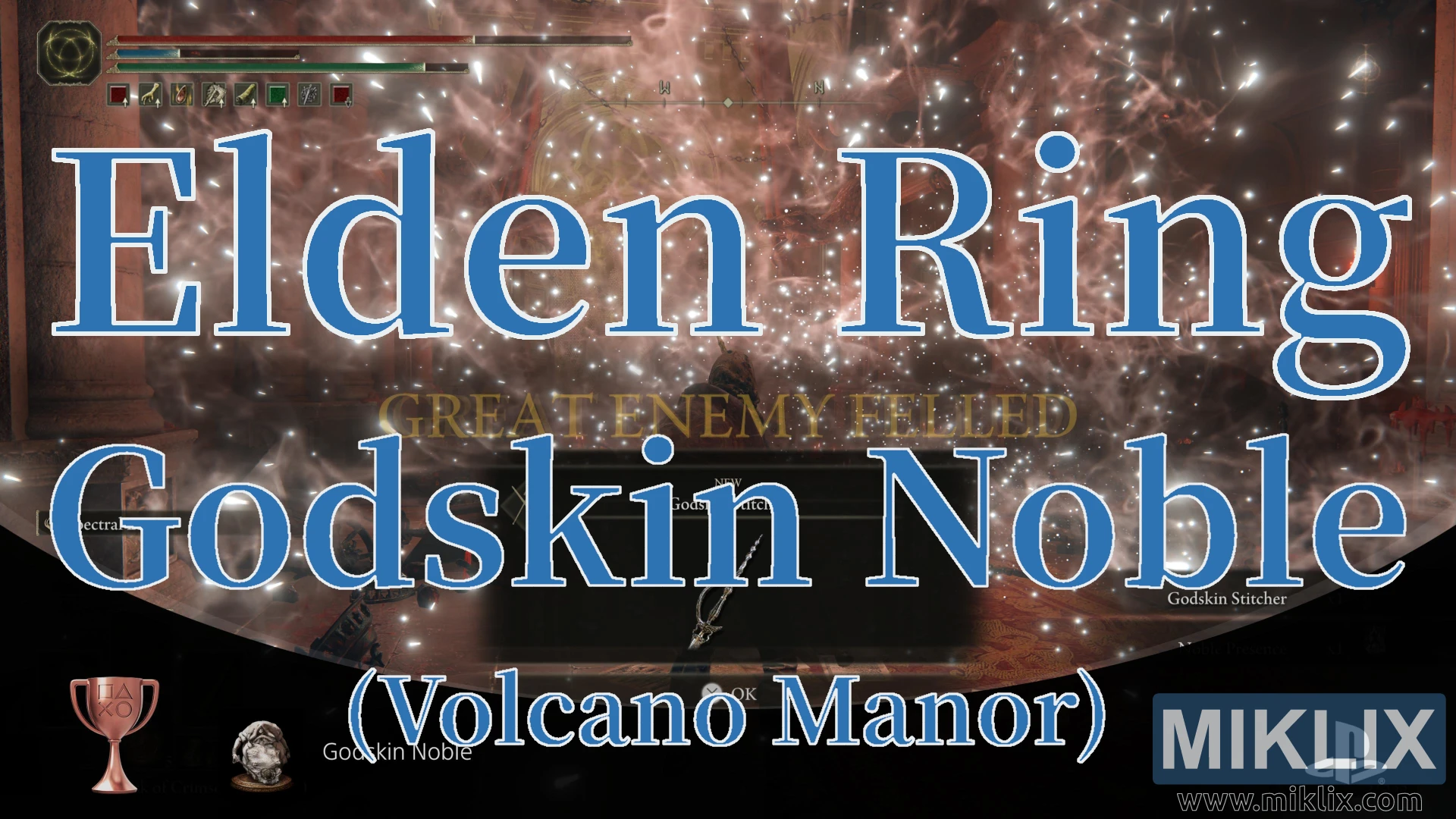 Godskin Noble is in the middle tier of bosses in Elden Ring, Greater Enemy Bosses, and is found inside the Temple of Eiglay in the Volcano Manor area of Mount Gelmir. It is an optional boss in the sense that it does not need to be defeated in order to progress the main story of the game.