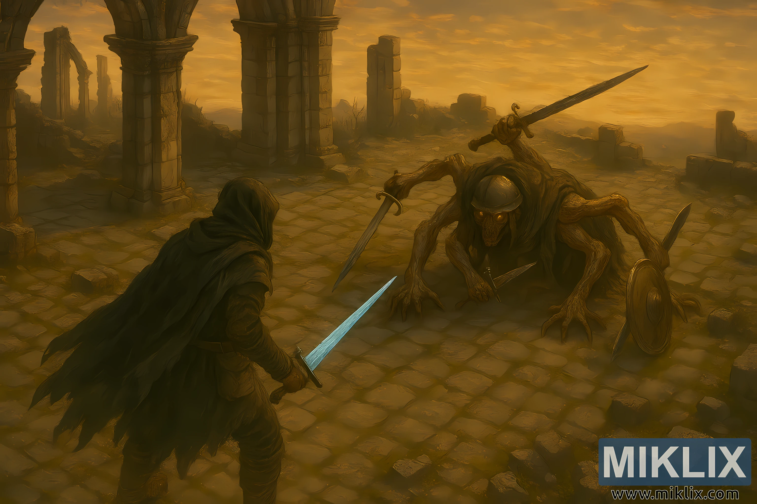 Image: Tarnished vs Crawling Grafted Scion at Sunset