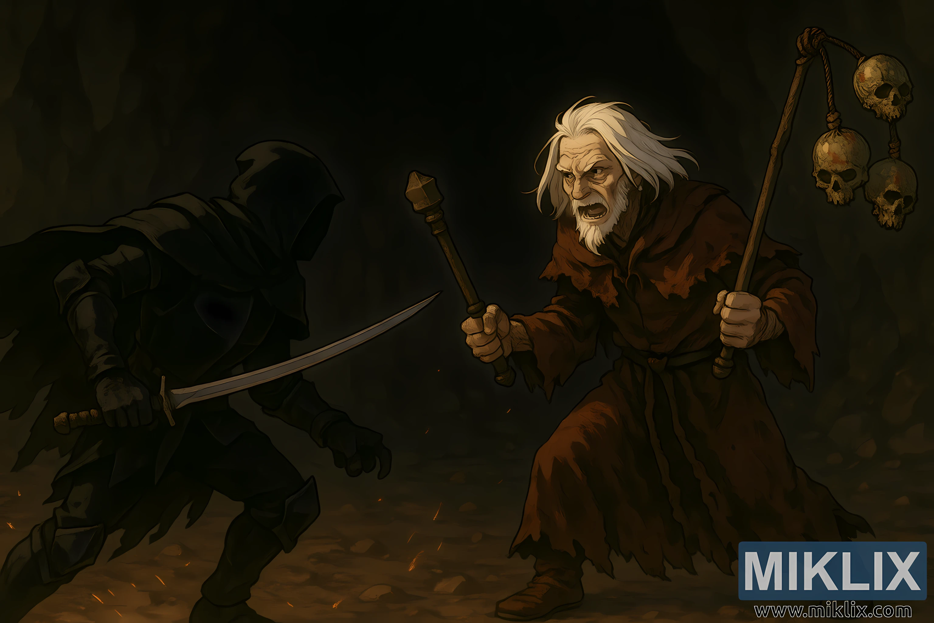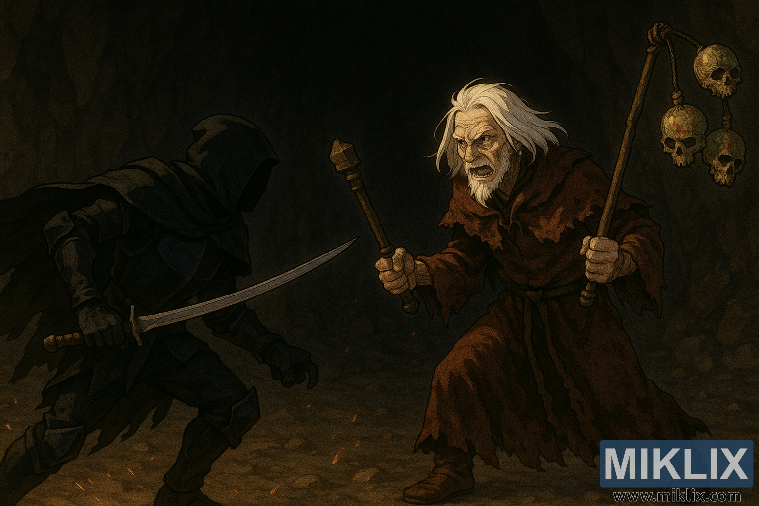 The image is related to: Elden Ring: Necromancer Garris (Sage's Cave) Boss Fight