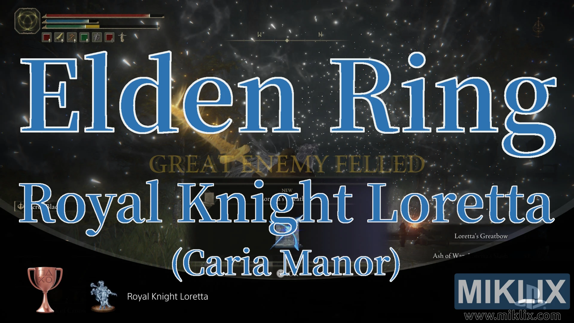 Royal Knight Loretta is in the middle tier of bosses in Elden Ring, Greater Enemy Bosses, and is the main boss of the Caria Manor area in Northern Liurnia of the Lakes. Like most lesser bosses in the game, this one is optional in the sense that you do not need to kill it in order to advance the main story, but you do need to kill it to proceed to the Three Sisters area and progress Ranni’s quest line.