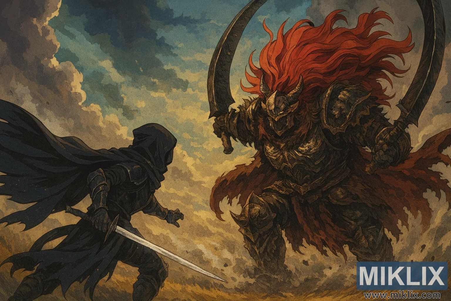Image: Tarnished vs. Starscourge Radahn – Anime Fan Art