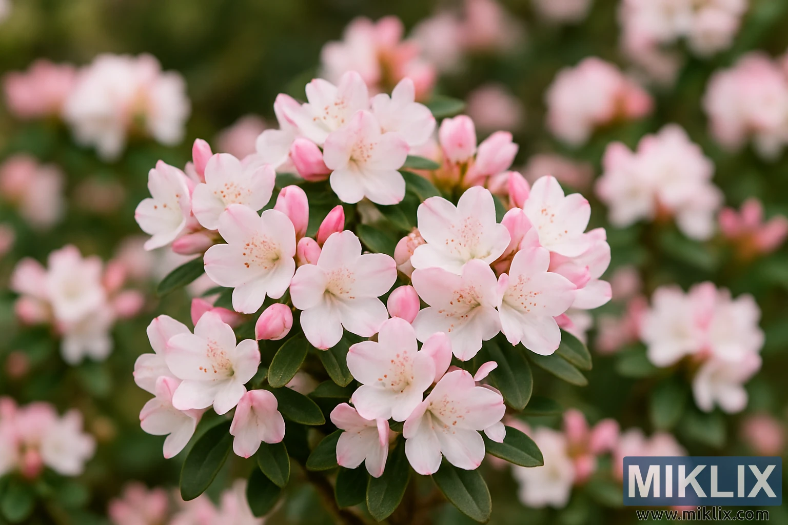 The overall mood of the image is delicate, fresh, and endearing. The Ginny Gee dwarf rhododendron, captured here in intimate detail, embodies both resilience and charm, offering a profusion of blossoms from a compact frame. This photograph reveals not only the plant’s physical beauty but also its essence: a small yet abundantly expressive shrub, a garden jewel whose white-and-pink flowers seem to radiate joy, elegance, and the gentle optimism of spring.