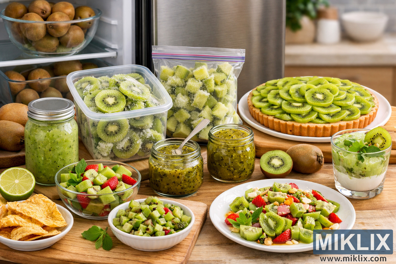 Discover different ways to store and use kiwifruit, including refrigeration, freezing, and preparation in desserts, salads, jams, and smoothies.