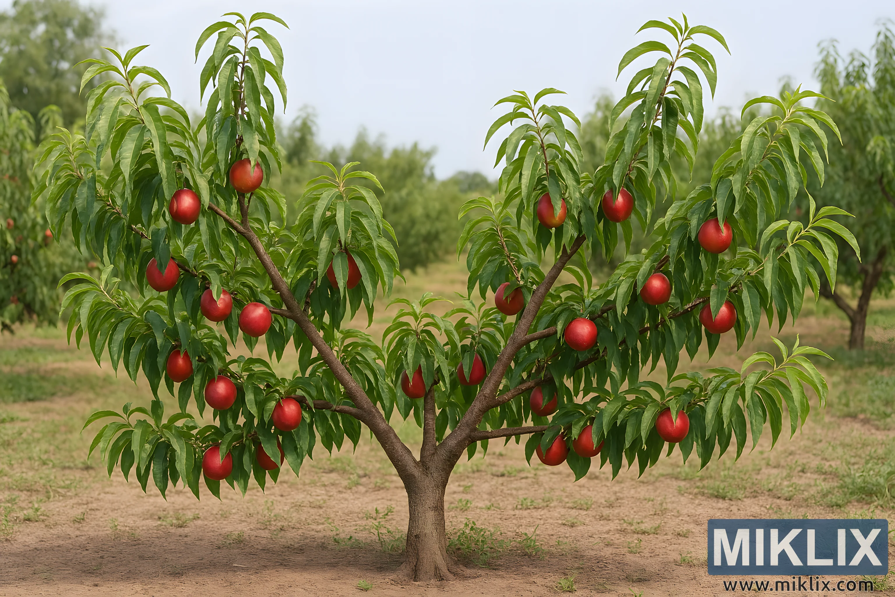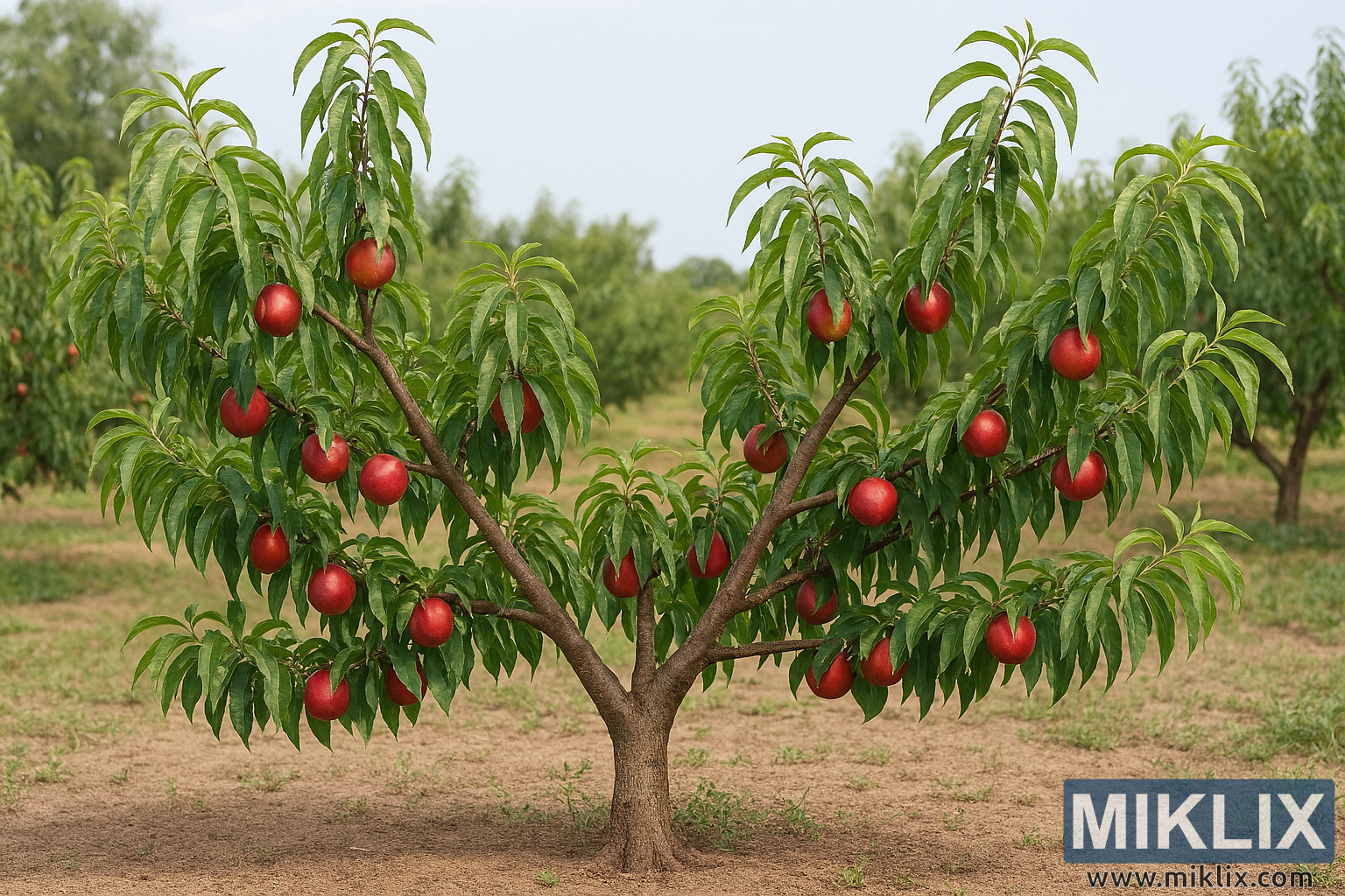 Image: Open-Center Pruned Nectarine Tree in Orchard