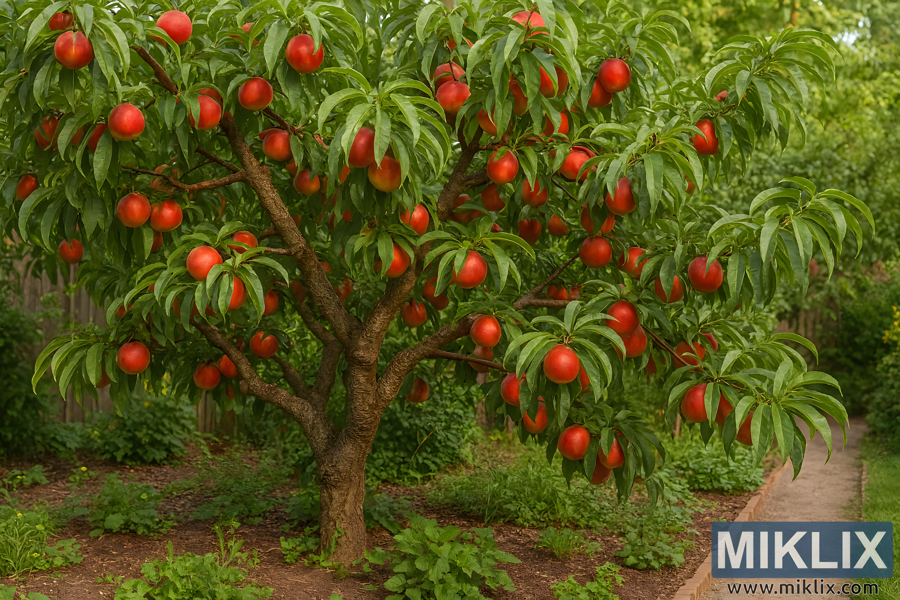 Image: Mature Nectarine Tree in Summer Garden