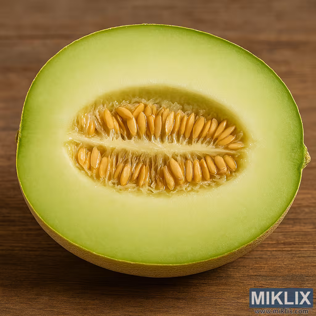 Image: Halved Honeydew Melon with Pale Green Flesh