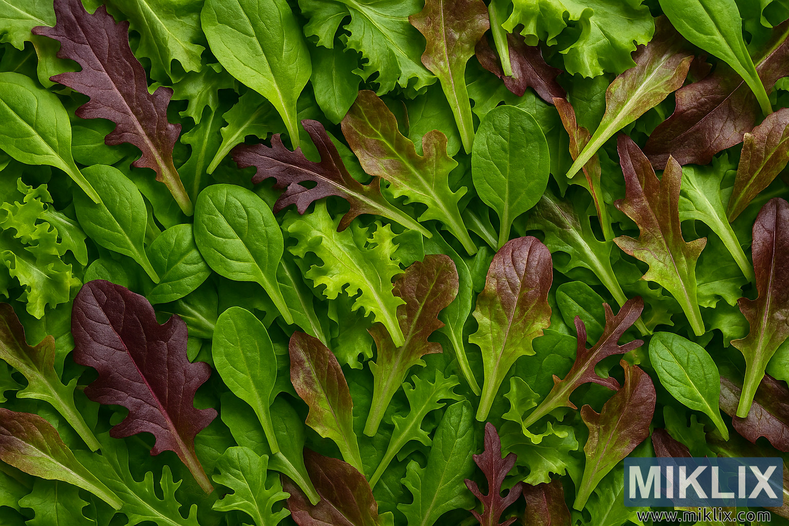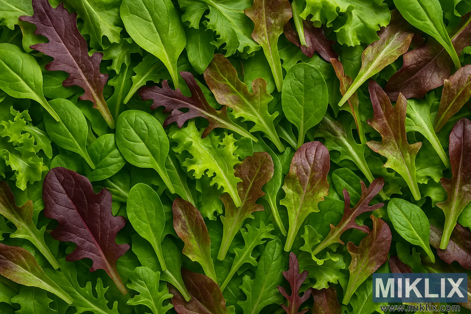 High-resolution image of a mesclun mix featuring a vibrant assortment of lettuce types with varied colors and textures.