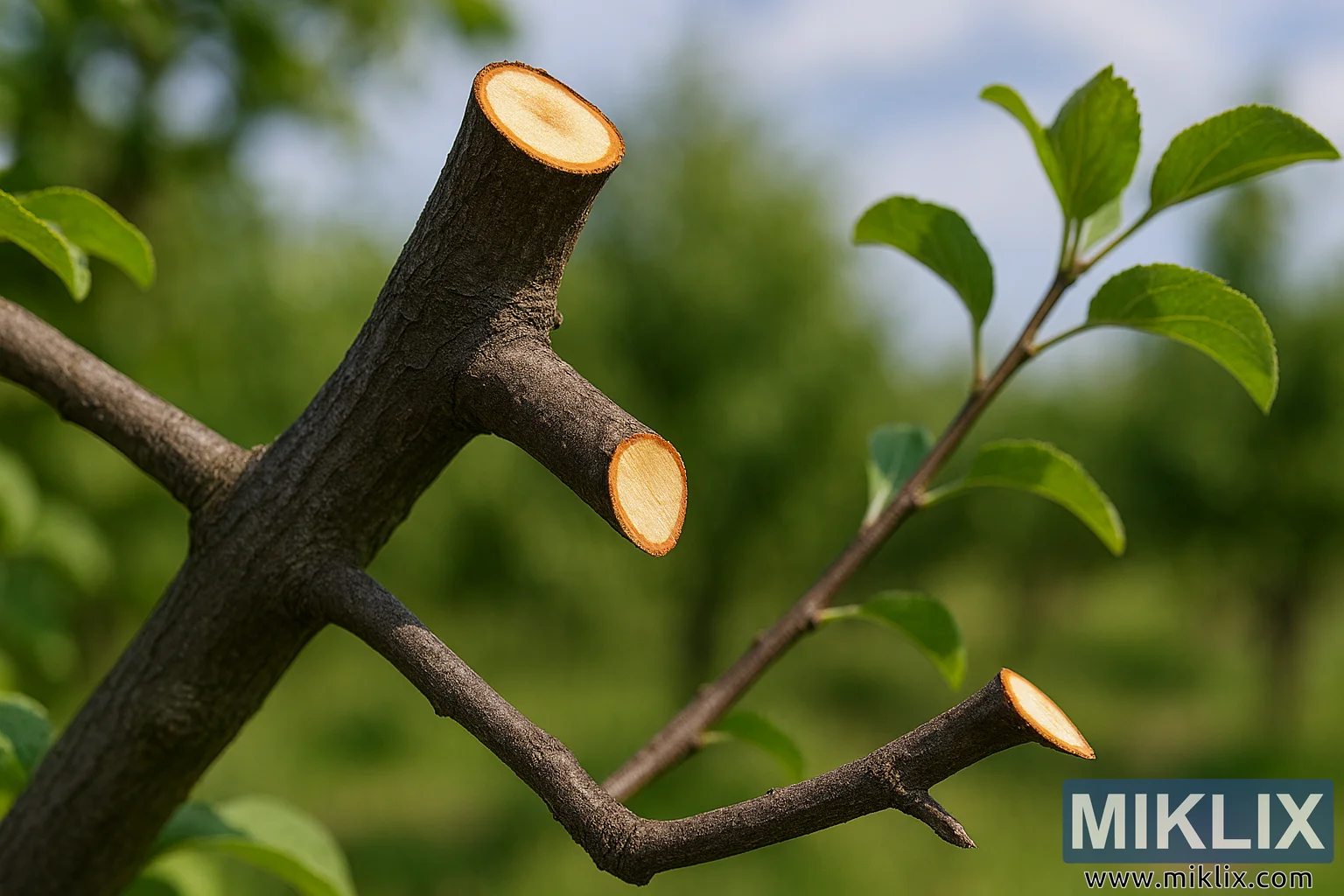 High-resolution image showing proper pruning cuts on quince tree branches, ideal for gardening education and technique demonstration.