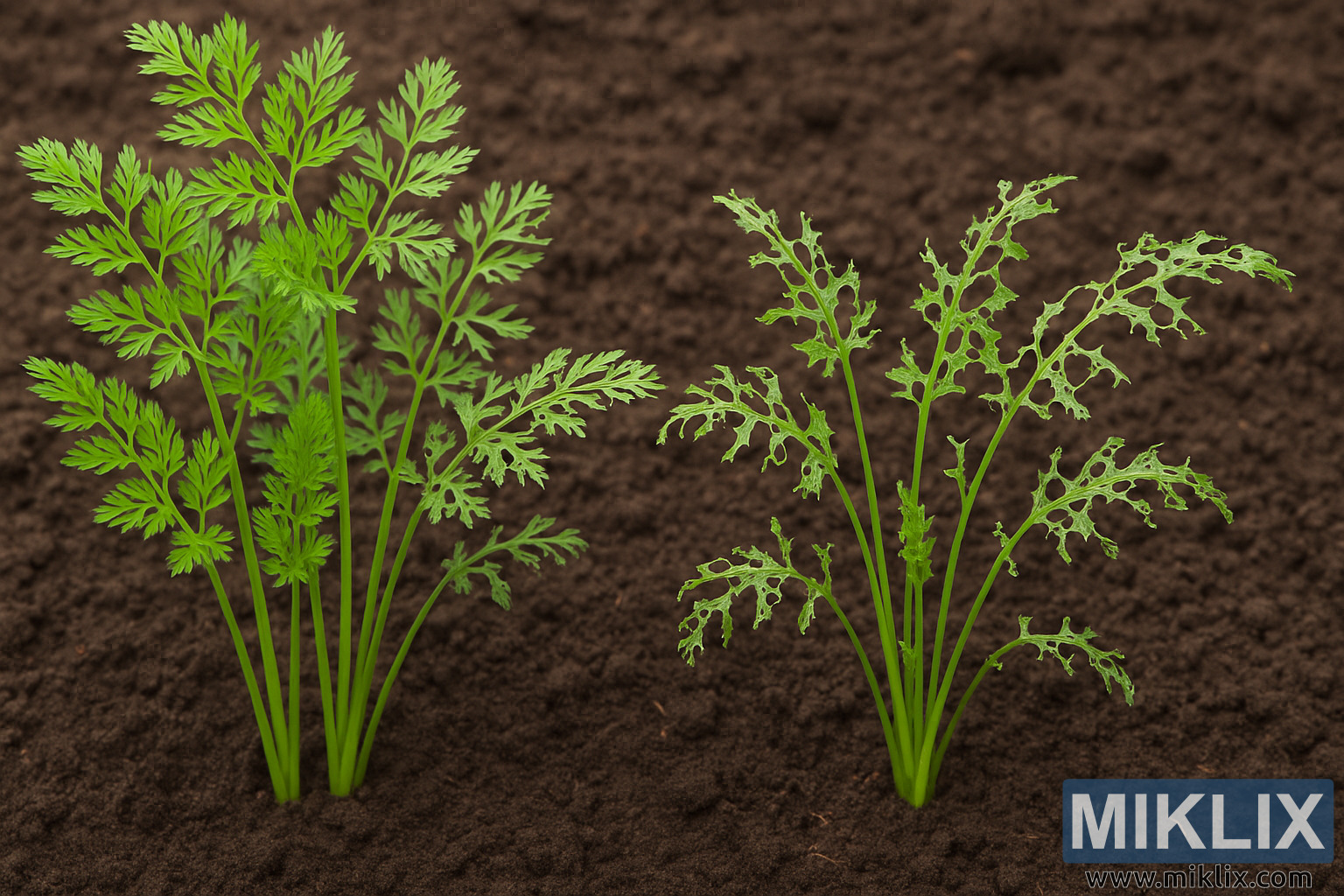 Image: Healthy vs. Pest-Damaged Carrot Tops Comparison