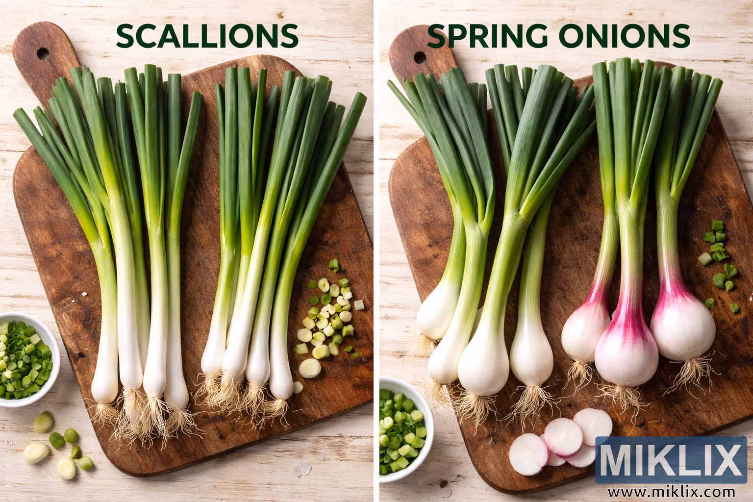 Image: Scallions vs Spring Onions Bulb Size Comparison