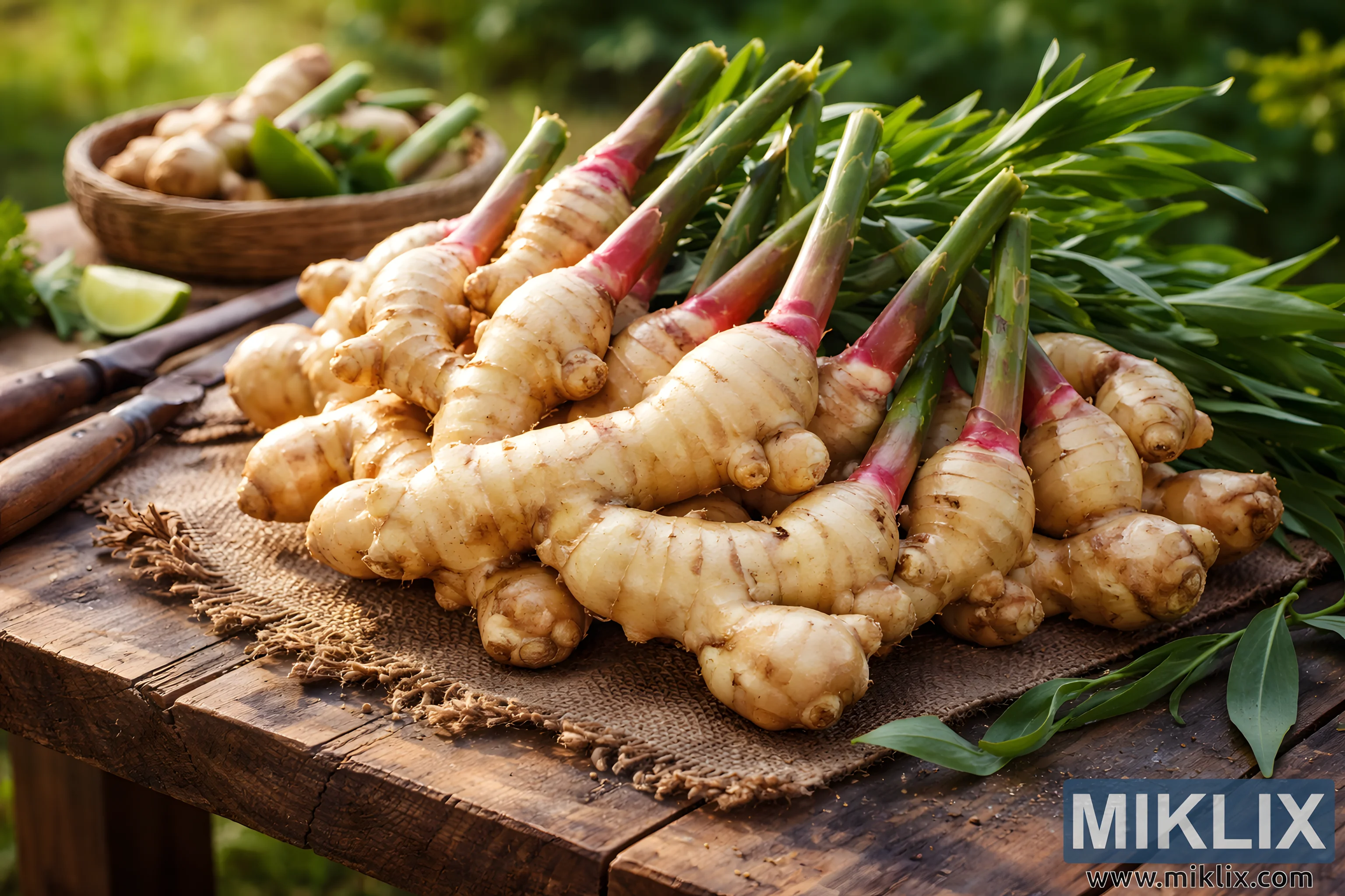 Image: Freshly Harvested Ginger on a Rustic Outdoor Table