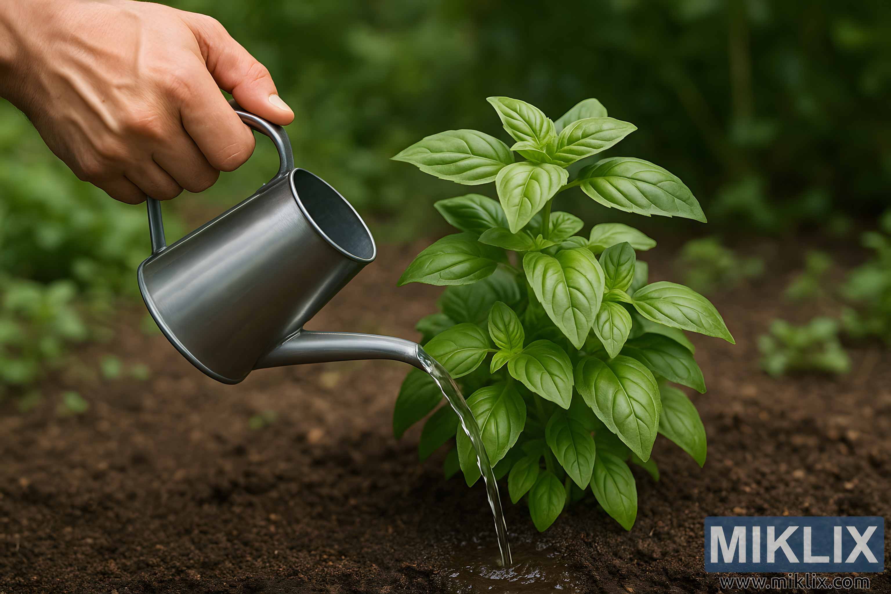Image: Proper Watering Technique for a Healthy Basil Plant