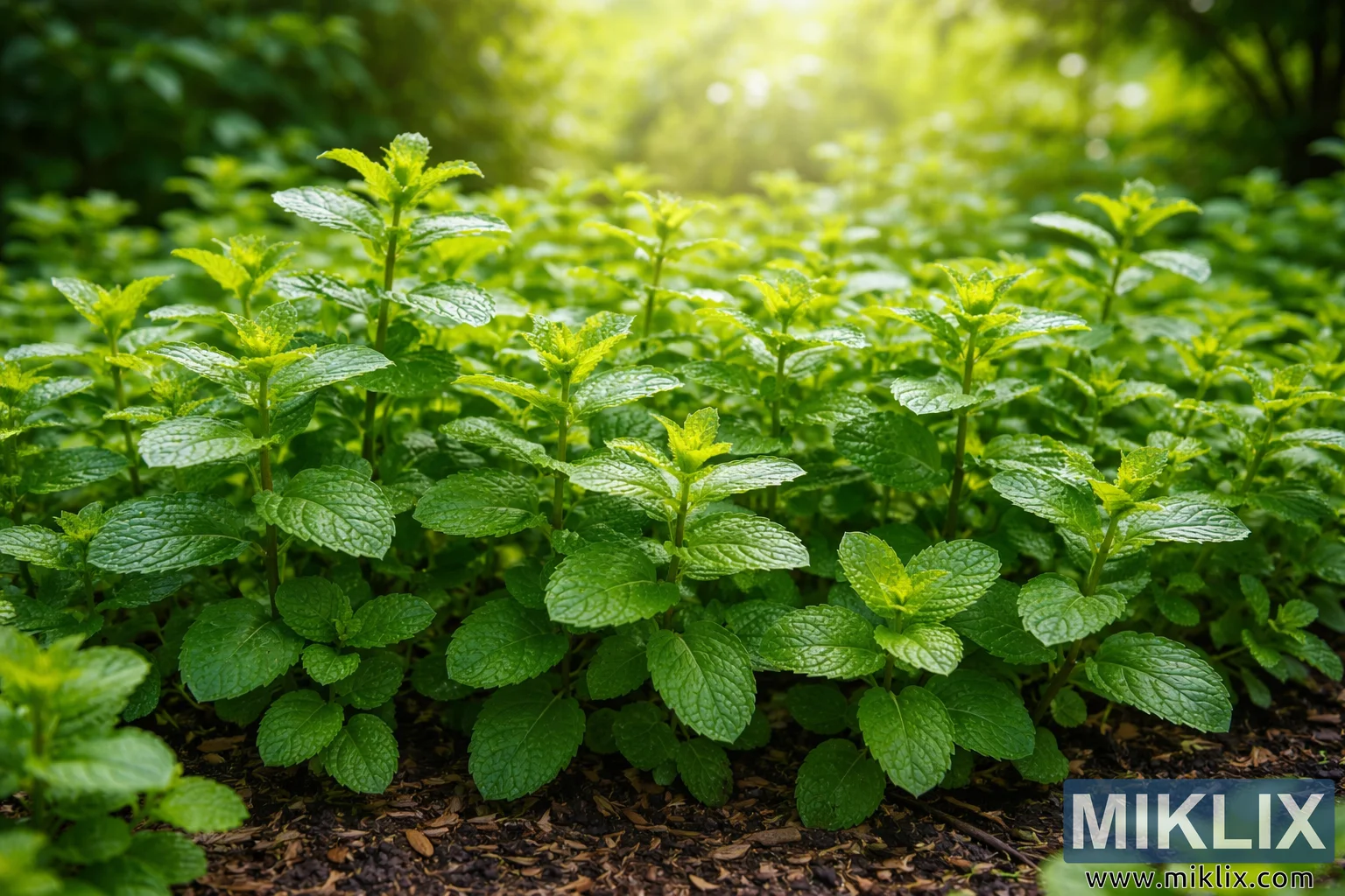 Image: Healthy Mint Plants Growing in a Partially Shaded Garden Bed