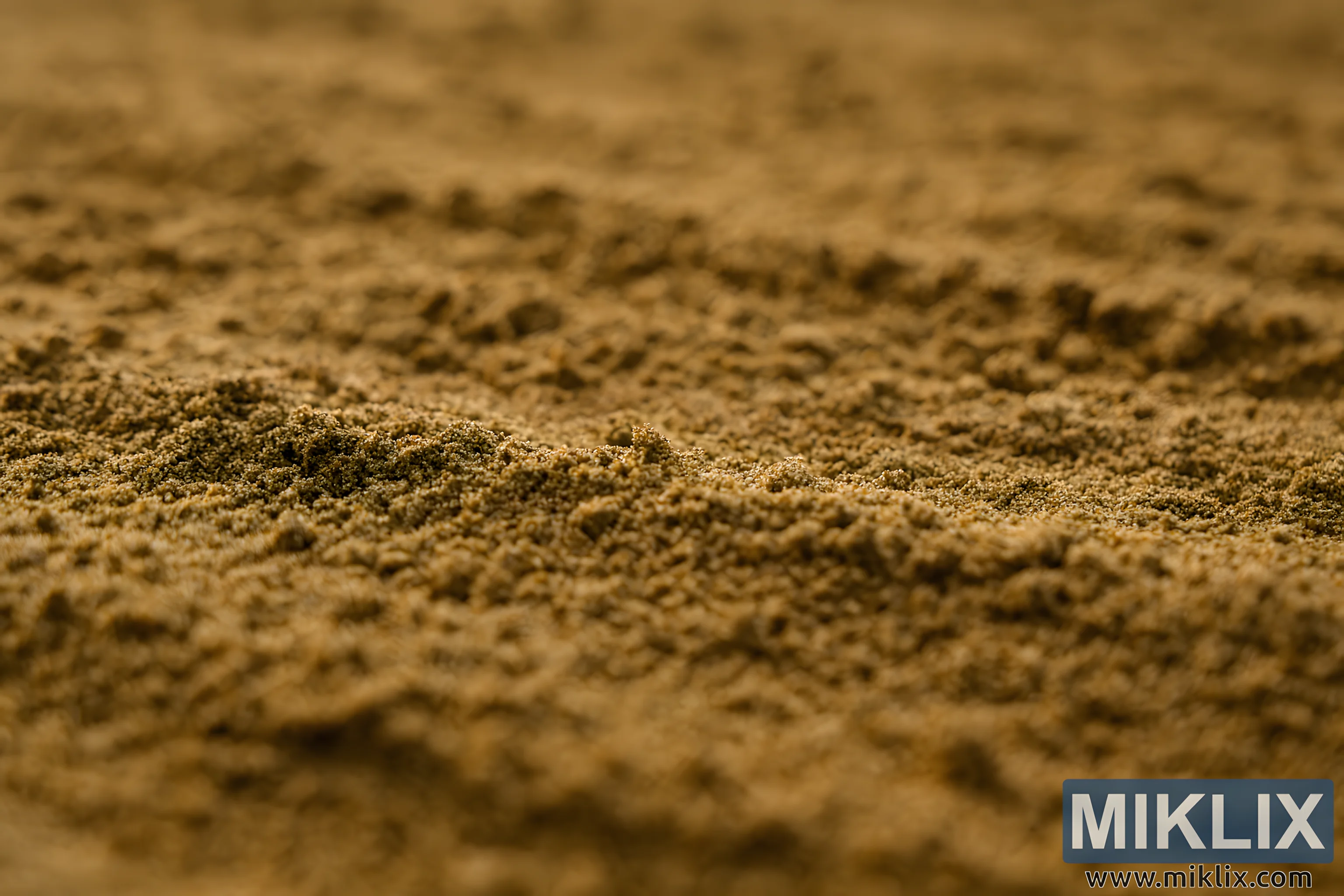 High-resolution image of textured sandy loam soil with warm lighting, perfect for almond farming and soil education