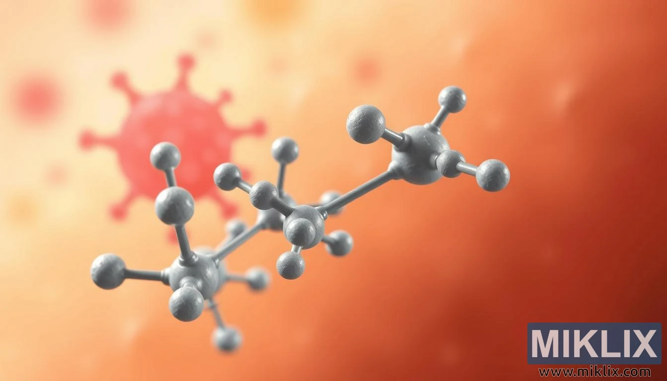 સ્પષ્ટ પરમાણુ અને પ્રસરેલા વાયરલ પ્રતીકોનું સંયોજન વૈજ્ઞાનિક કથાને સમજાવે છે: L-Lysine જૈવરાસાયણિક સ્તરે કામ કરે છે જે શરદીના સોજાના ફેલાવાની આવર્તન, અવધિ અને તીવ્રતા ઘટાડવામાં મદદ કરે છે. વાયરલ પ્રતિકૃતિ માટે જરૂરી એમિનો એસિડ, આર્જીનાઇન સાથે સ્પર્ધા કરીને, L-Lysine હર્પીસ સિમ્પ્લેક્સ વાયરસની પ્રજનન ક્ષમતાને વિક્ષેપિત કરે છે, જેનાથી શરીરની સંરક્ષણ પ્રણાલીને ટેકો મળે છે. આ બાયોકેમિકલ ક્રિયાપ્રતિક્રિયા છબીમાં પ્રતીકાત્મક રીતે કેદ કરવામાં આવી છે, જ્યાં L-Lysine નો ચોક્કસ અને તેજસ્વી પરમાણુ તીવ્ર રાહતમાં આગળ વધતો દેખાય છે, જ્યારે ઝાંખા વાયરલ સ્વરૂપો પૃષ્ઠભૂમિમાં પાછા ફરે છે, જે દમન અને નિયંત્રણ બંને સૂચવે છે.