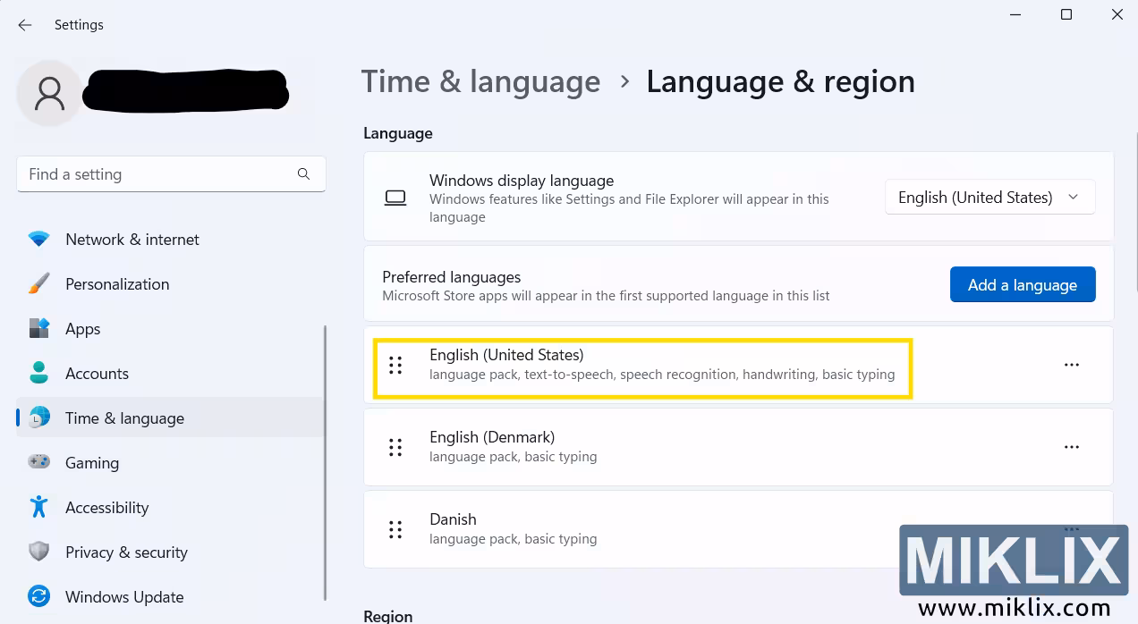 છબી: Windows 11 ભાષા અને પ્રદેશ સેટિંગ્સ