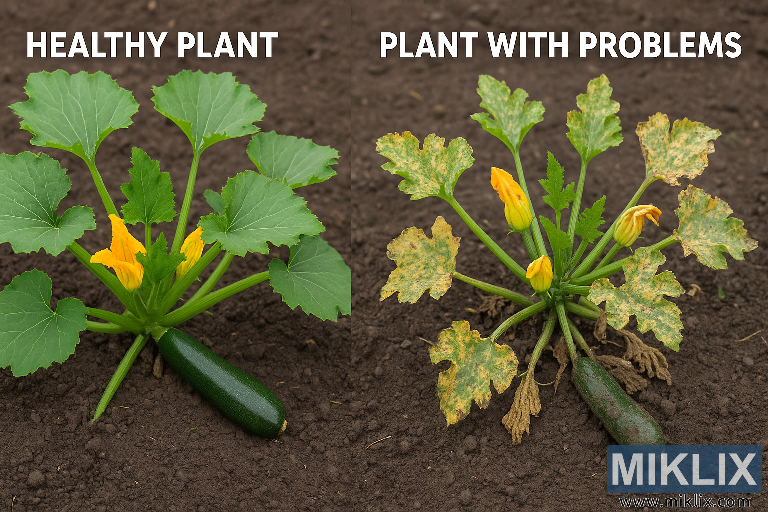 Healthy vs. Problem-Affected Zucchini Plant Comparison