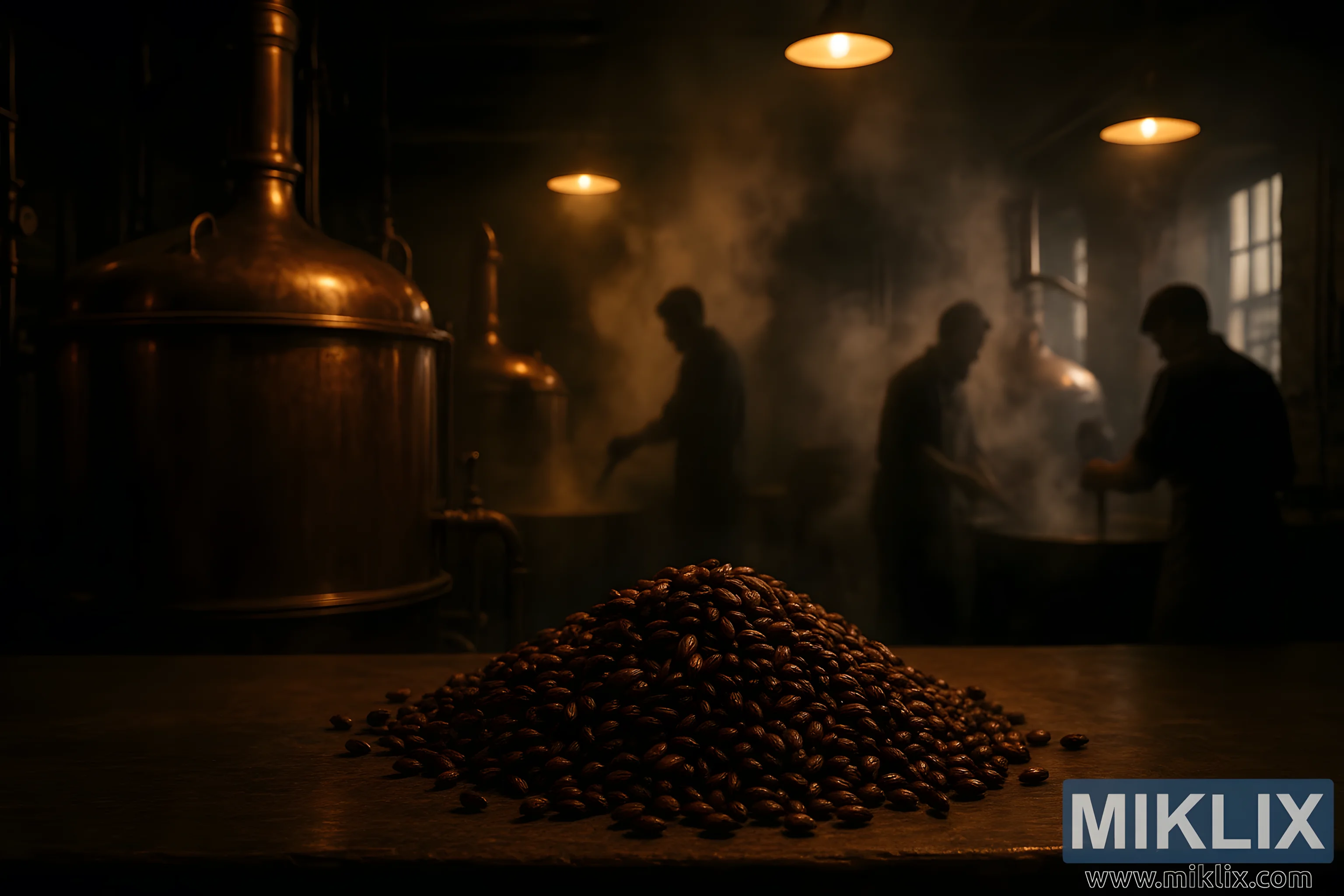 Slabo osvijetljena pivovara s bakrenim posudama i prženim zrnima ječma, topla para i arome karamele i tosta koje evociraju zanatski pivarski zanat i odvažne okuse.