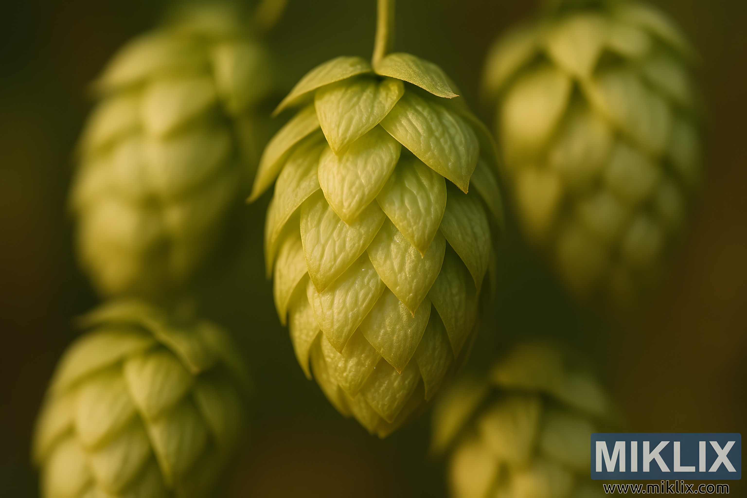 Slika ima i taktilnu kvalitetu. Fini grebeni i papirnate teksture brakteja toliko su precizno uhvaćeni da se gotovo može osjetiti njihova blaga hrapavost, zamisliti slabašna ljepljivost lupulina na vrhovima prstiju nakon drobljenja češera. Ovaj senzorni poziv podsjeća nas da kuhanje piva nije samo čin znanosti i tradicije, već i dodira, mirisa i izravne veze sa sirovim sastojcima. Svaki češer u kadru predstavlja bezbrojne sate uzgoja, pažljivog postavljanja na rešetku, sunčanih dana i hladnih večeri koji zajedno oblikuju njihov razvoj.