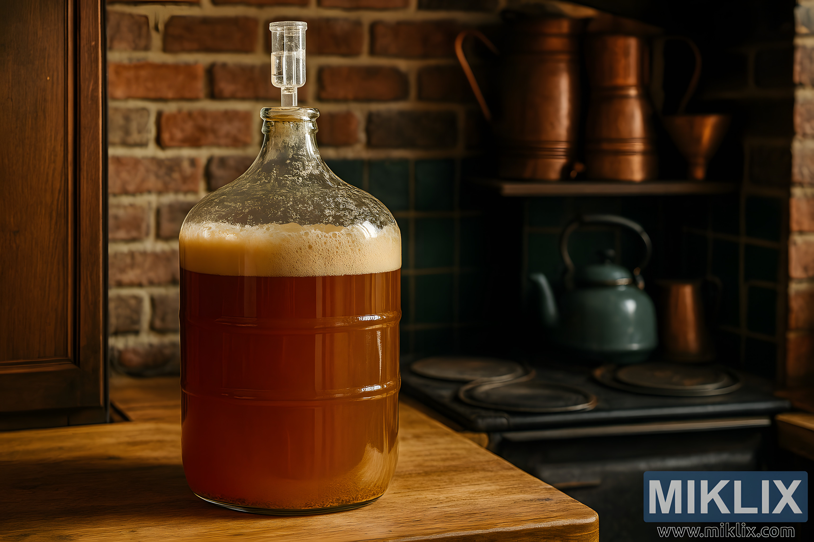 English Ale Fermentation in Rustic British Kitchen