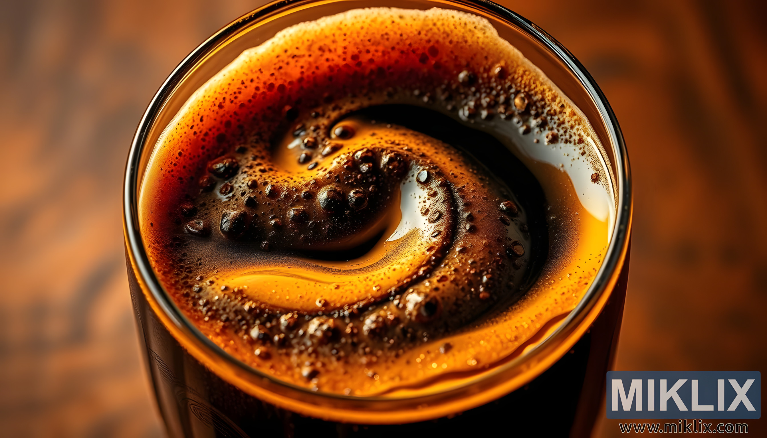 trenutku lebdećem između uživanja i umjetnosti, slika obuhvaća bit crnog sladnog piva u njegovom najizražajnijem obliku. Čaša, elegantna i bistra, sadrži tamnu, raskošnu tekućinu koja kao da upija i lomi toplo, zlatno svjetlo oko sebe. Nijansa piva je duboka, sjajna crna sa suptilnim podtonovima granata i espressa, otkrivenim samo tamo gdje svjetlost hvata rubove. Ovo nije piće koje se skriva - ono privlači pažnju, njegova površina živa je s vrtložnim uzorcima pjene i mjehurića koji plešu u usporenom snimku, nagovještavajući karbonizaciju i složenost iznutra.