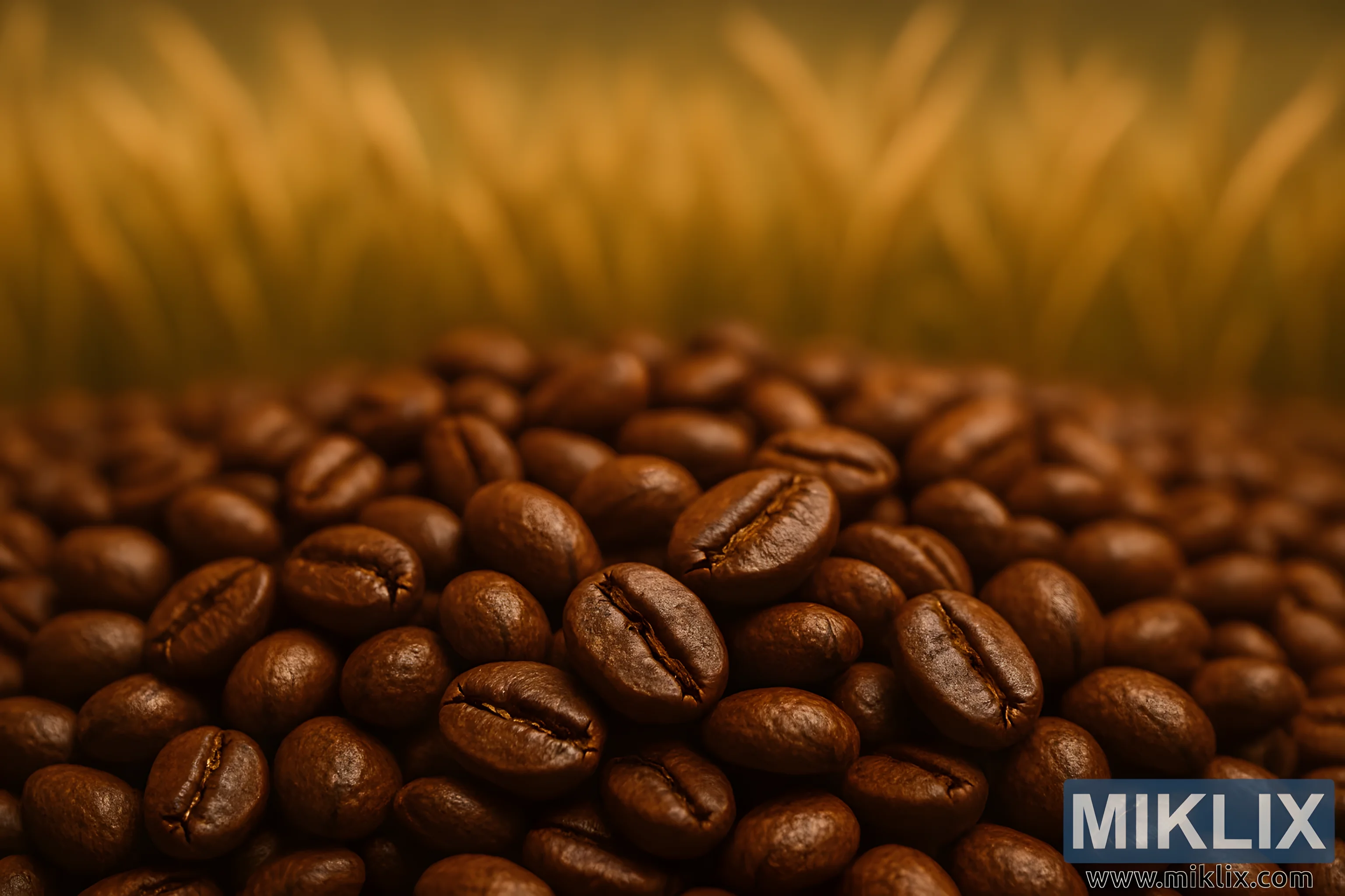pozadini se preko kadra proteže zamućeno polje zlatnih zrna slada, a njegov meki fokus stvara vizualni kontrast koji pojačava vezu između kave i kuhanja. Zrna, iako nejasna, dodaju sloj konteksta i narativa, sugerirajući poljoprivredne korijene oba sastojka i zajedničke procese prženja, sušenja i razvoja okusa. Ova pozadina je više od dekorativne - simbolična je, povezuje zrna kave sa širim svijetom proizvodnje slada i nagovještava njihovu ulogu u stvaranju složenih, aromatičnih piva.