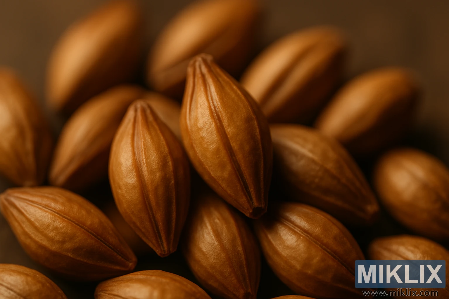 Detaljan krupni plan zrna slada Maris Otter s karamelnim tonovima i teksturiranim površinama, blago osvijetljen kako bi se istaknule jedinstvene kvalitete ovog klasičnog britanskog slada.
