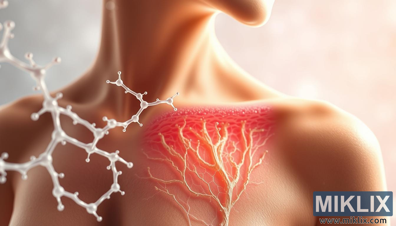 Մաշկի մանրամասն կտրվածք՝ հիալուրոնաթթվով, ֆիբրոբլաստներով և կոլագենով, որը ընդգծում է խոնավությունն ու երիտասարդությունը։