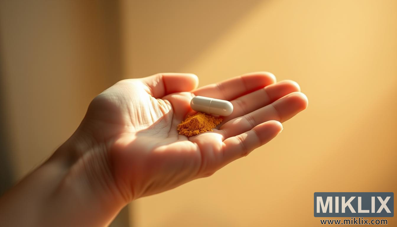 Այս պատկերը ներկայացնում է պարզության և կենտրոնացման մի պահ՝ արտացոլելով հավելումների էությունը այնպես, որ այն զգացվում է և՛ անձնական, և՛ խորհրդանշական։ Ձեռքը, մեղմորեն լուսավորված տաք, բնական լույսով, նրբորեն մեկնվում է դիտողի կողմը, որի բաց ափը գրկում է սպիտակ պարկուճ և ոսկեգույն դեղին փոշու մի փոքրիկ կույտ։ Հարթ և ժամանակակից տեսքով պարկուճը աչքի է ընկնում կենտրոնում, որի հարթ մակերեսը արտացոլում է լույսը նուրբ շեշտադրումներով։ Դրա կողքին տեղադրված է չամրացված փոշին, որը վառ փայլում է, իսկ հարուստ զաֆրանային երանգը արթնացնում է կենսունակություն, էներգիա և բնական միացությունների հզոր կոնցենտրացիա։ Կոմպոզիցիան մտերիմ է, զերծ շեղող գործոններից, հրավիրելով դիտողին մտորել այս հանգիստ ժեստի մեջ պարունակվողի նշանակության մասին։