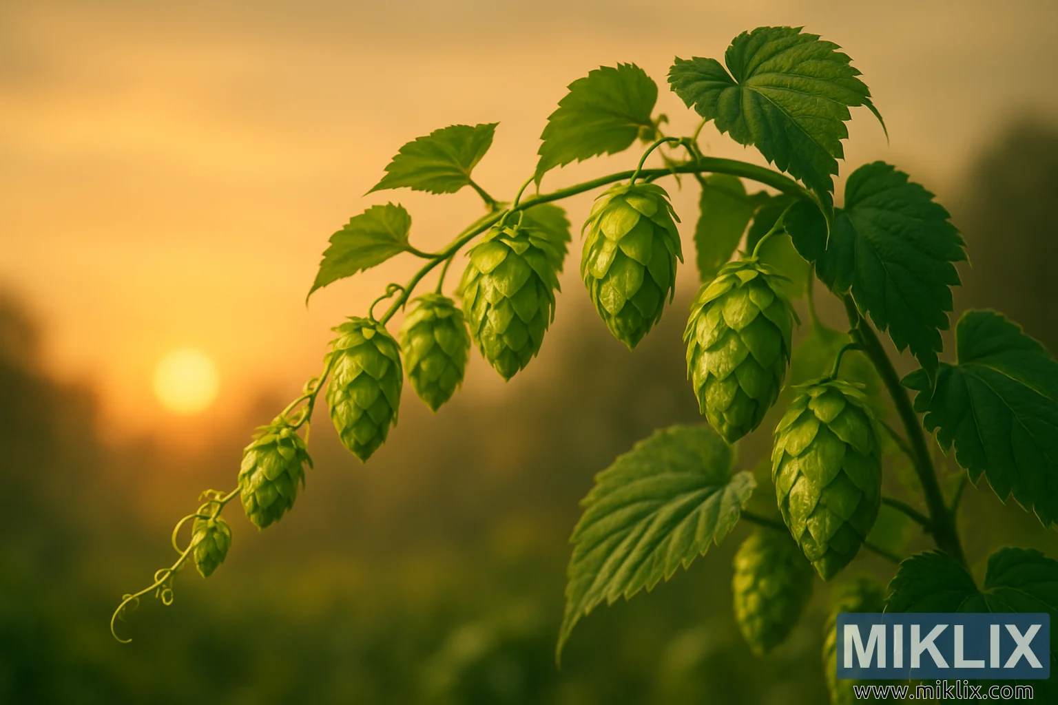 Golden Sunset Hop Vine with Vibrant Cones