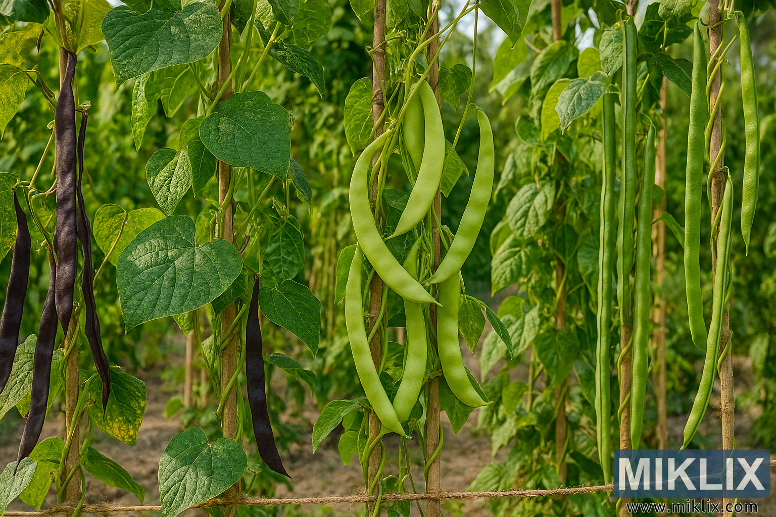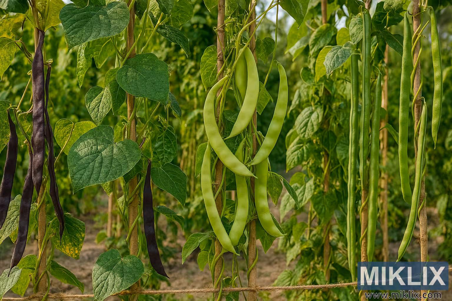 Diverse Green Beans Growing on Supports