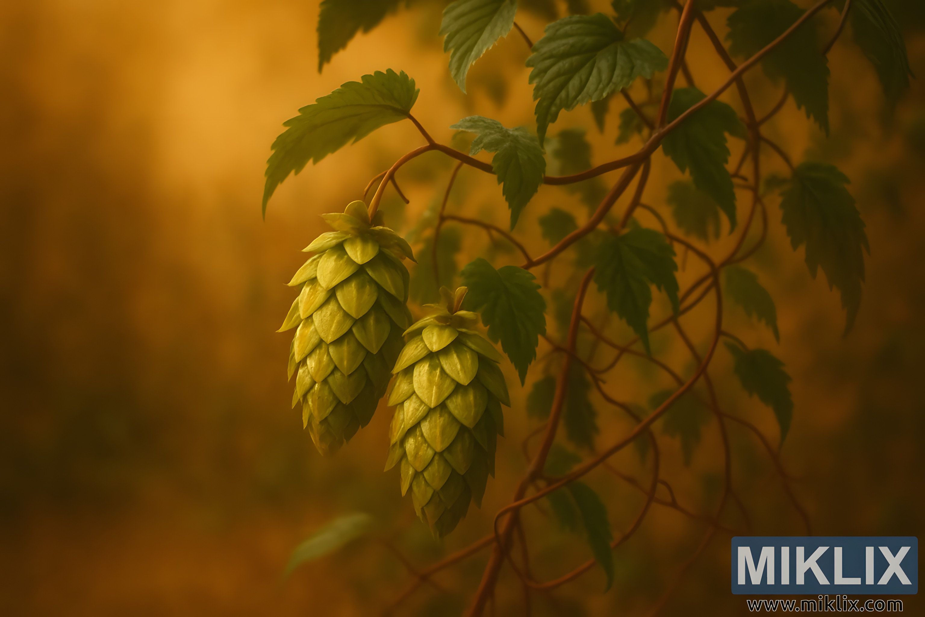 Gambar: Kerucut Hop Redvine Kanada dalam Cahaya Emas