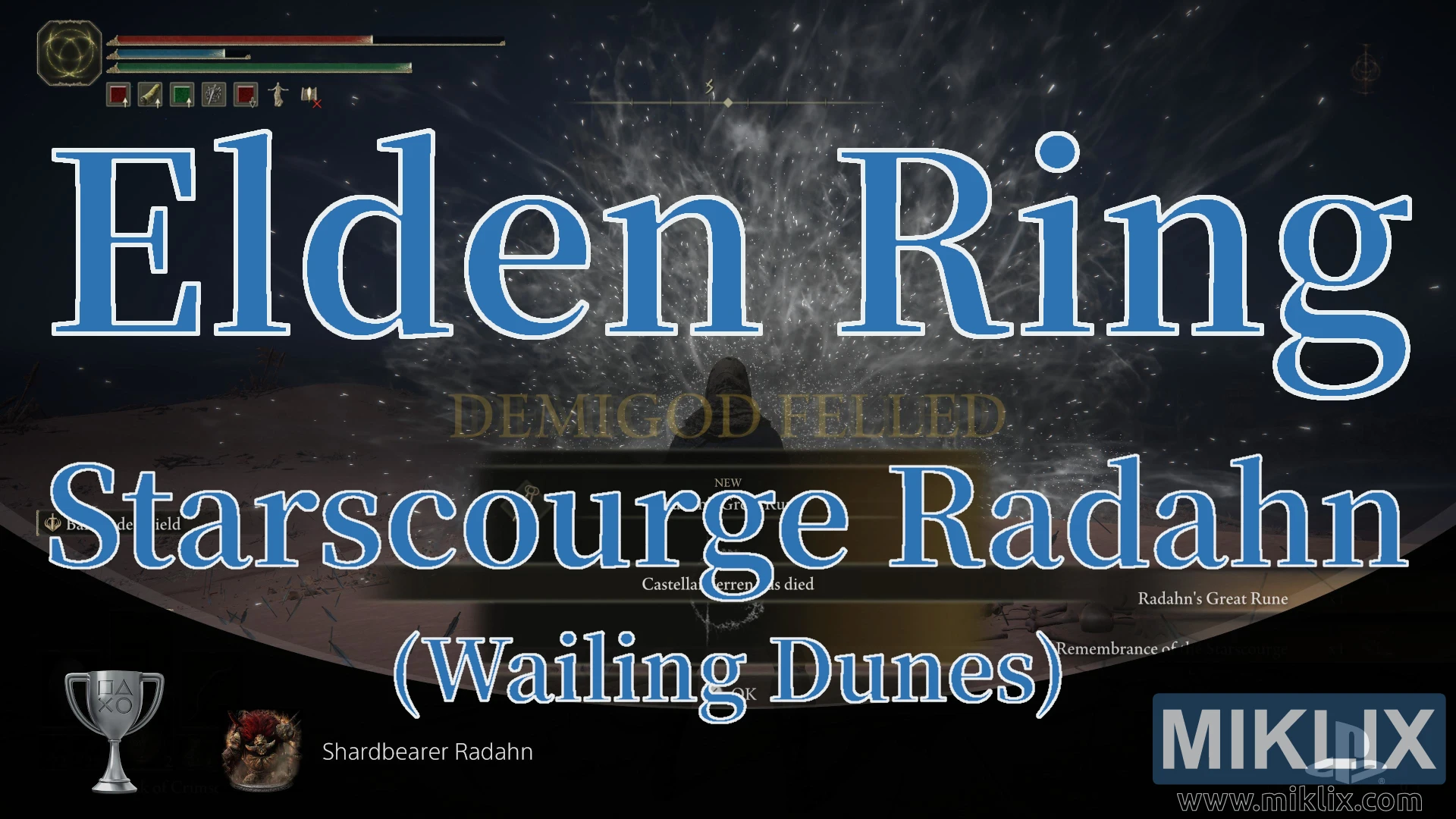 Stjörnuskrímslið Radahn er í hæsta þrepi, Demigods, og finnst á svæðinu Wailing Dunes fyrir aftan Redmane kastalann í Caelid þegar Hátíðin er virk. Þrátt fyrir að vera Demigod er þessi yfirmaður valfrjáls í þeim skilningi að þú þarft ekki að drepa hann til að komast áfram í aðalsögunni, en hann er einn af Shardbearers og að minnsta kosti tveir þeirra verða að vera sigraðir, og hann verður að vera sigraður til að fá aðgang að Shadow of the Erdtree viðbótinni, svo fyrir flesta verður hann samt sem áður skyldubundinn yfirmaður.