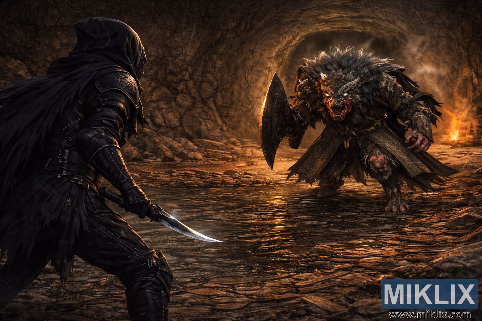 Dark Fantasy Cave Duel – Tarnished vs Beastman