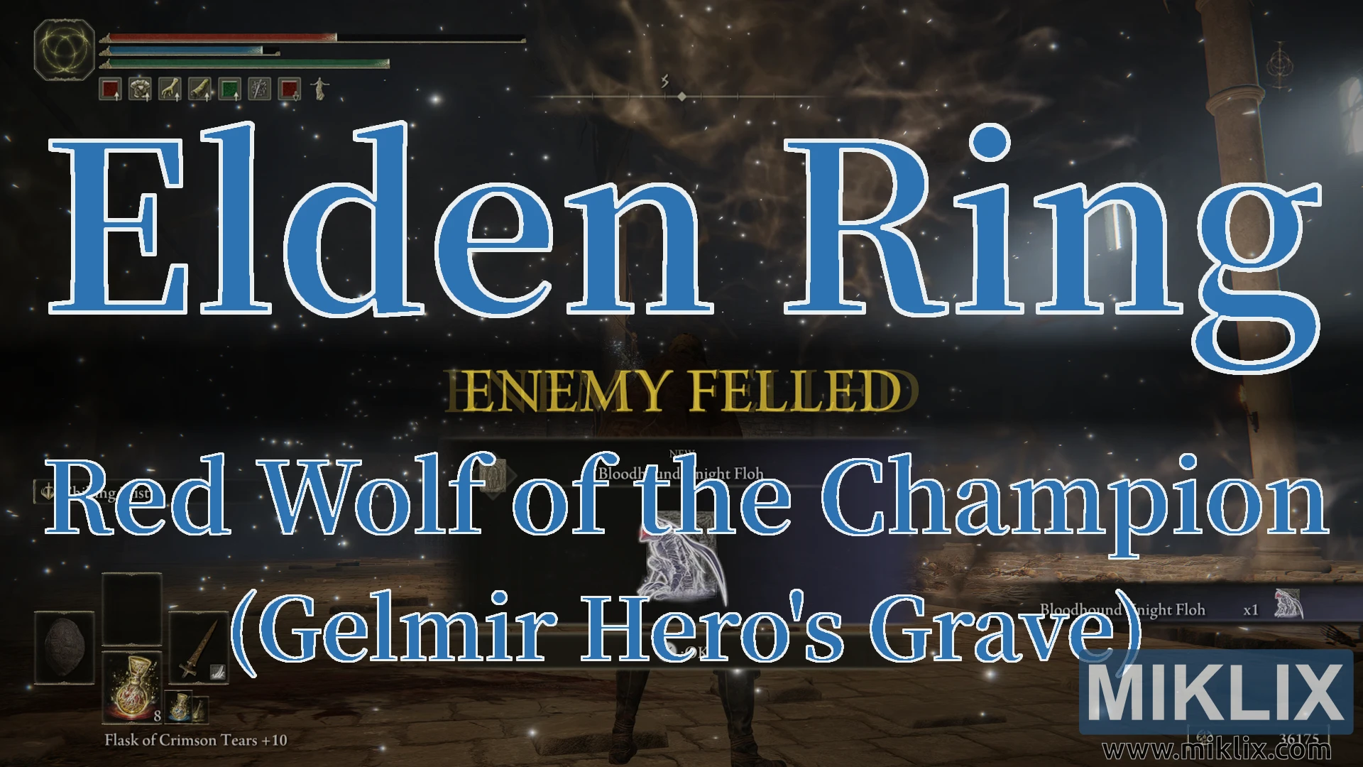 レッドウルフ・オブ・ザ・チャンピオンは、『エルデンリング』のフィールドボスの中でも最下層のボスであり、ゲルミール山にあるダンジョン「ゲルミール英雄の墓」の最終ボスです。ゲーム内の他の下位ボスと同様に、このボスはオプションで倒すことが可能であり、メインストーリーを進めるために倒す必要はありません。
