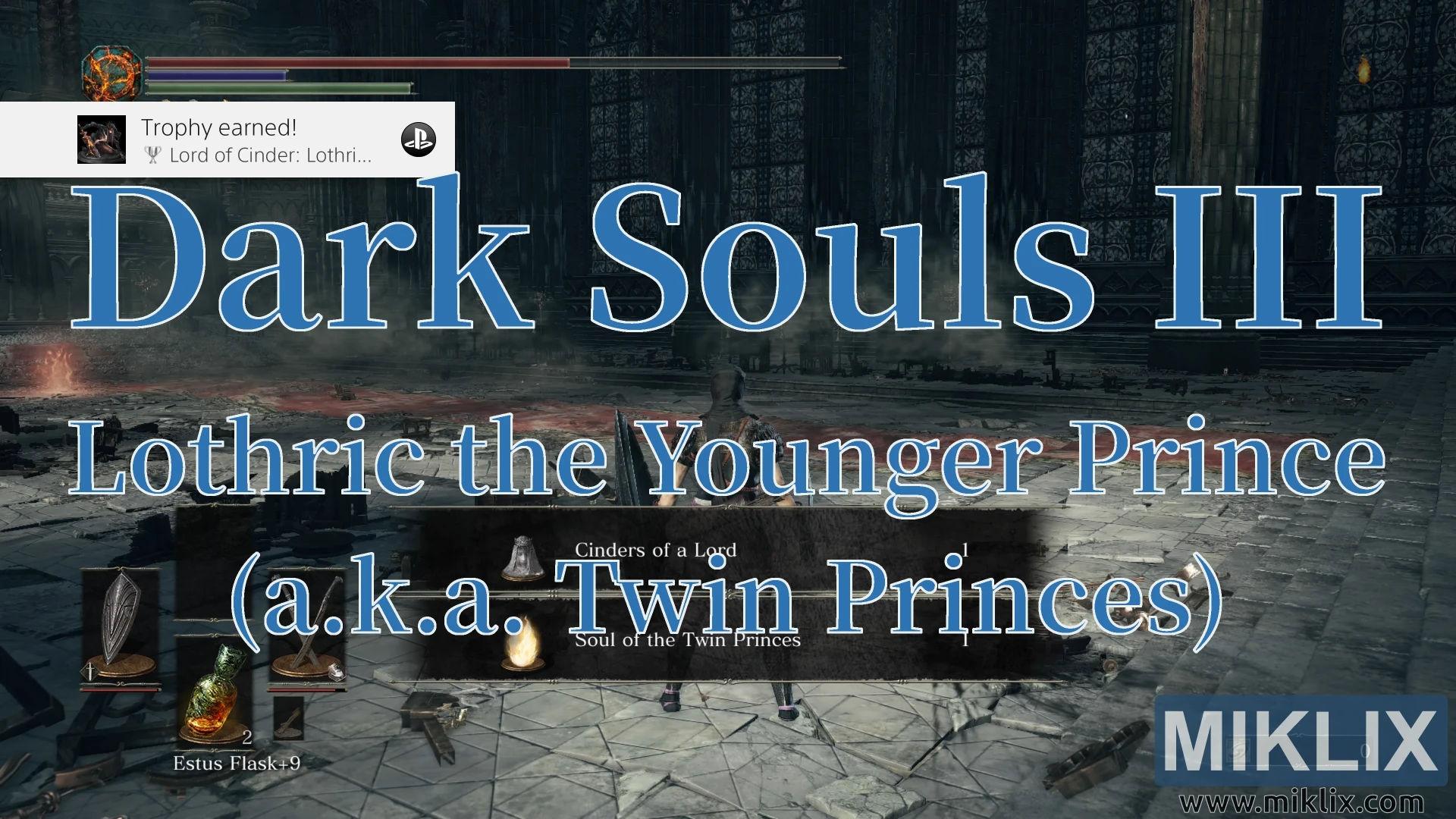 Video iki nuduhake carane mateni bos sing diarani Lothric Pangeran Muda ing Dark Souls III. Pertemuan iki uga dikenal minangka Pangeran Kembar - lan jiwa bos sing sampeyan entuk amarga bisa ngalahake dheweke uga diarani Jiwa Pangeran Kembar - amarga sampeyan bener-bener nglampahi akeh pertemuan kanggo nglawan sedulure Lothric, Lorian.
