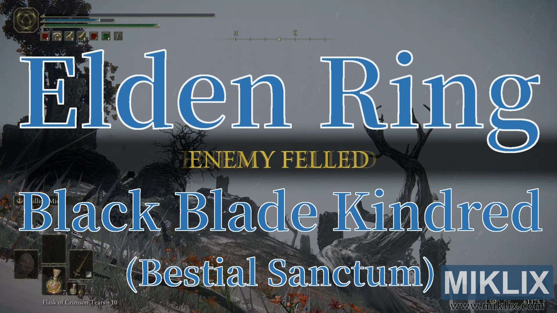 Black Blade Kindred ana ing tingkat paling ngisor, Field Bosses, lan ditemokake ing njaba sing njaga lawang menyang Bestial Sanctum ing Dragonbarrow. Kaya panggedhe sing luwih cilik ing game kasebut, iki minangka opsional amarga sampeyan ora perlu ngalahake supaya bisa maju crita utama.