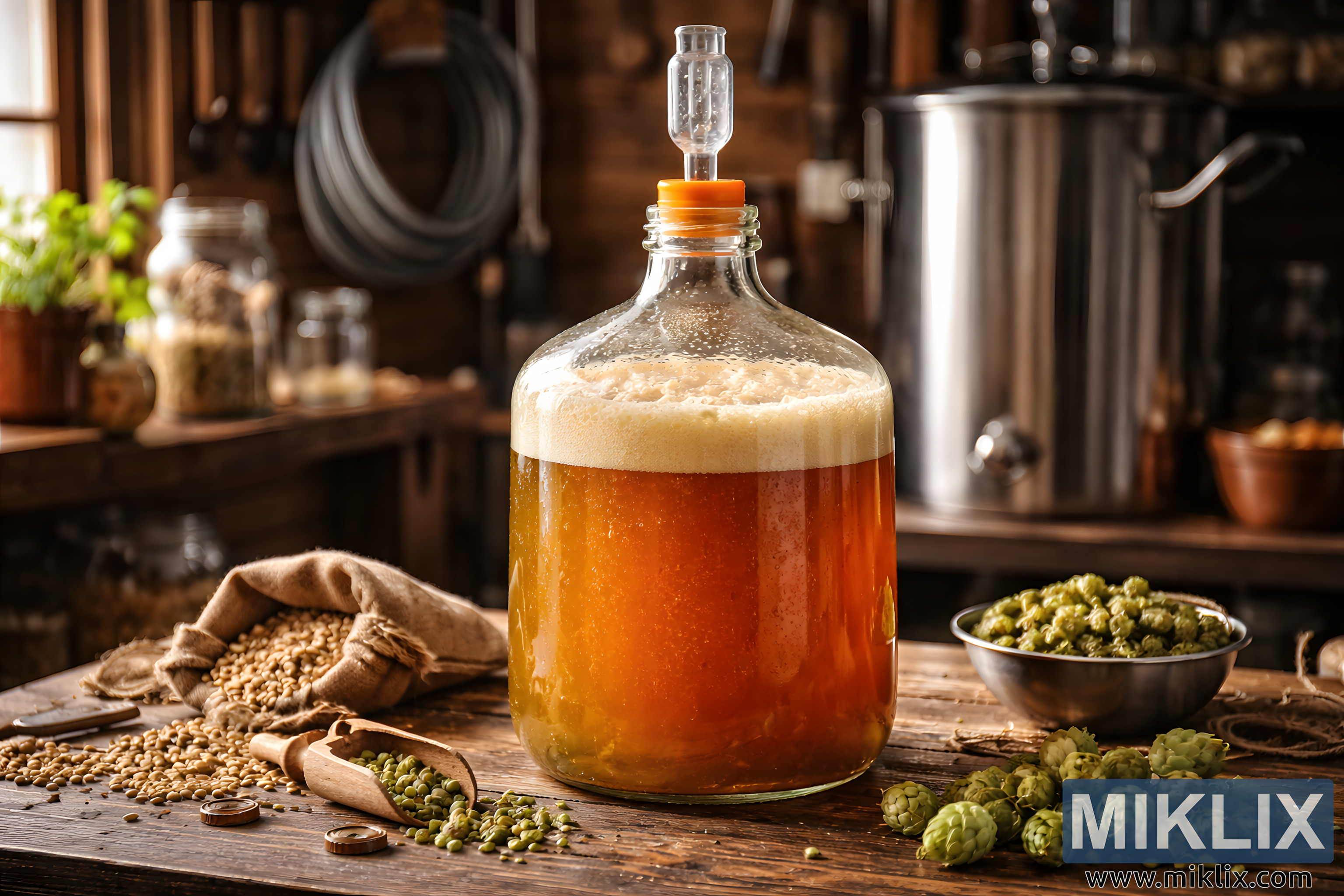 Gambar: Fermentasi IPA Amerika nganggo Persiapan Homebrew Pedesaan