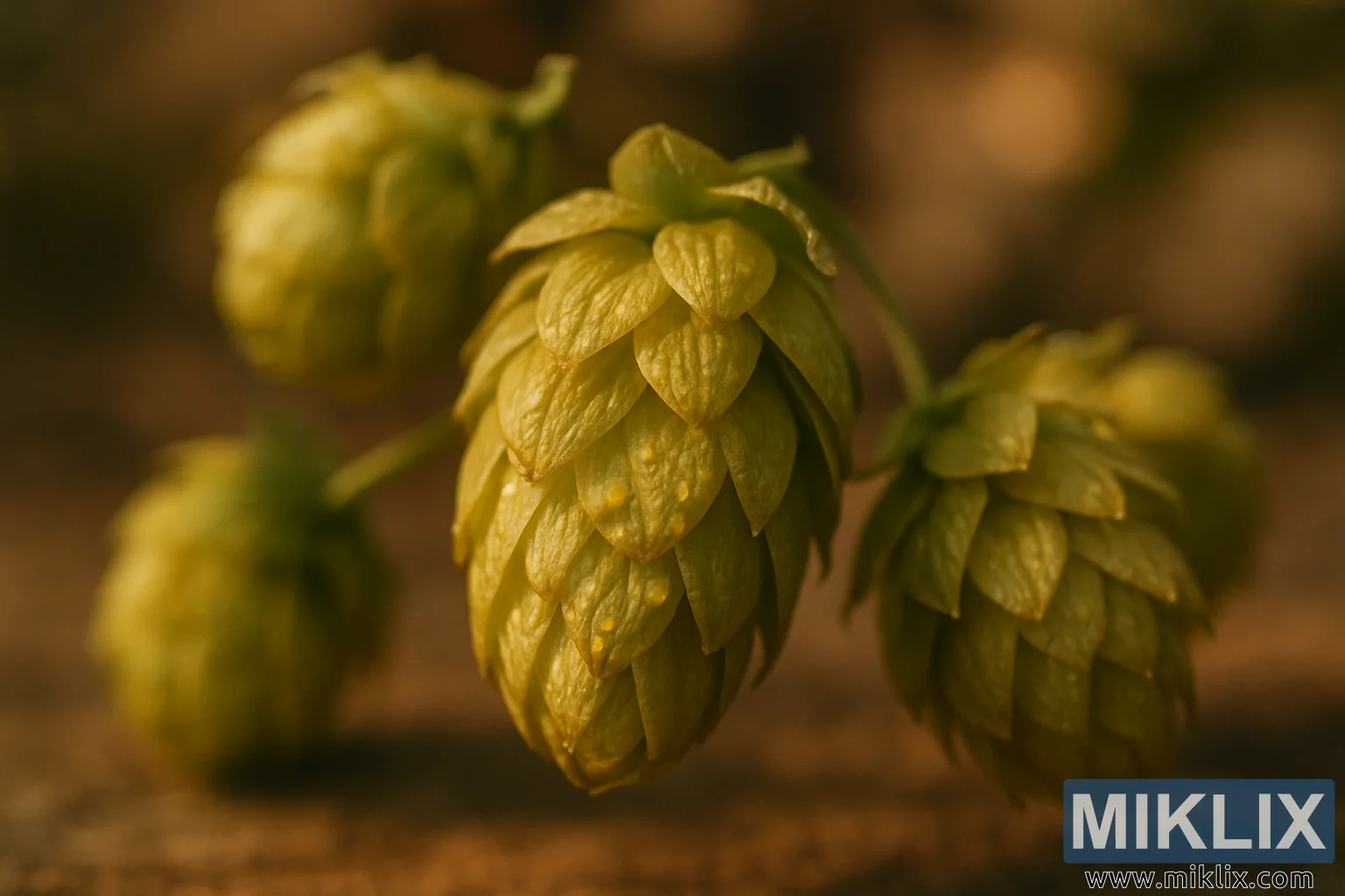 ამ ახლო ხედში, სვიის გირჩები ყურადღებას იპყრობს თავისი რთული სტრუქტურით, მათი გადაფარვისას განლაგებული ქერცლები ბუნებრივ მოზაიკას ქმნის, რომელიც როგორც სინათლეს, ასევე ჩრდილს იპყრობს. თითოეული ფოთლების ბურთულა ფისის დახვეწილი ელფერით ბრწყინავს, მათი ზედაპირის ქვეშ არსებული ლუპულინის ჯირკვლები სუსტად ანათებენ, როგორც ოქროსფერი ძვირფასი ქვები. ფერთა პალიტრა მდიდარი მწვანე ფერისკენ იხრება და ოქროსფერ ტონებში გადადის, რაც სიმწიფისა და სიცოცხლისუნარიანობის შთაბეჭდილებას ქმნის, თითქოს თავად გირჩები მზის შუქითაა გაჟღენთილი. მათი ფორმის ორგანული სირთულე დაფიქრებისთვის პაუზას იწვევს: ყოველი ნაკეცი და მრუდი მოთმინებითი ზრდის პროდუქტია, რომელსაც ნიადაგი, ჰაერი და დრო ზრდიან. წინა პლანზე დეტალი იმდენად გამოხატულია, რომ თითქმის წარმოიდგენთ ერთ-ერთი გირჩისგან დაჭერისას შეხების შეგრძნებას, ოდნავ ქაღალდისებრი გარე ზედაპირის შეგრძნებას და წებოვან ნარჩენებს, რომლებიც თითებზე ეკვრის და თან ციტრუსის, ფიჭვისა და მიწის მძაფრ არომატებს ატარებს.