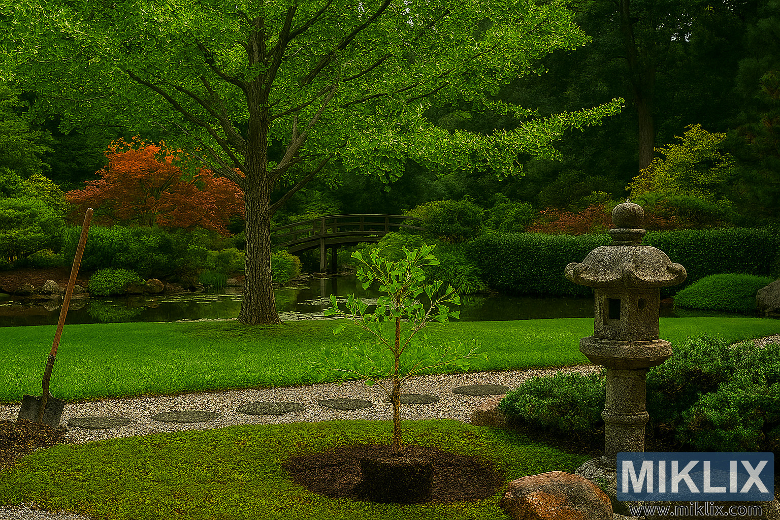 Japanese Garden with Ginkgo Tree and Traditional Elements