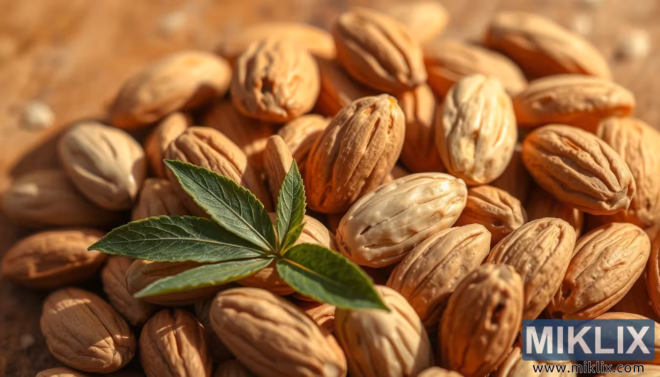 ಸಾಂಕೇತಿಕವಾಗಿ, ಇಲ್ಲಿನ ಬಾದಾಮಿಗಳು ಕೇವಲ ಖಾದ್ಯ ಬೀಜಗಳಿಗಿಂತ ಹೆಚ್ಚಿನವು; ಅವು ಚೈತನ್ಯ, ಅತ್ಯಾಧಿಕತೆ ಮತ್ತು ಜೀರ್ಣಕ್ರಿಯೆಯ ಆರೋಗ್ಯದ ಸಂಕೇತಗಳಾಗಿವೆ. ಅವುಗಳ ಫೈಬರ್-ಭರಿತ ಸ್ವಭಾವವು ಕರುಳಿನ ಆರೋಗ್ಯವನ್ನು ಬೆಂಬಲಿಸುತ್ತದೆ, ಆದರೆ ಅವುಗಳ ಪ್ರೋಟೀನ್ ಮತ್ತು ಆರೋಗ್ಯಕರ ಕೊಬ್ಬುಗಳು ನಿರಂತರ ಶಕ್ತಿಯನ್ನು ಒದಗಿಸುತ್ತವೆ, ದೀರ್ಘಕಾಲೀನ ಚೈತನ್ಯದ ಮೇಲೆ ಕೇಂದ್ರೀಕರಿಸಿದ ಆಹಾರದಲ್ಲಿ ಅವುಗಳನ್ನು ಪ್ರಧಾನವಾಗಿಸುತ್ತದೆ. ಚಿತ್ರವು ಅವುಗಳ ಪೌಷ್ಟಿಕಾಂಶದ ಸಾಮರ್ಥ್ಯವನ್ನು ಮಾತ್ರವಲ್ಲದೆ ಅವು ತರುವ ಸಮೃದ್ಧಿ ಮತ್ತು ನೈಸರ್ಗಿಕ ಸಂಪತ್ತಿನ ಅರ್ಥವನ್ನೂ ತಿಳಿಸುತ್ತದೆ, ಪ್ರತಿ ಶೆಲ್ನೊಳಗೆ ಮಣ್ಣು, ಸೂರ್ಯ ಮತ್ತು ಸಮಯದ ಕೇಂದ್ರೀಕೃತ ಪ್ರಯೋಜನಗಳಿವೆ ಎಂದು ಸೂಚಿಸುತ್ತದೆ. ಕ್ಲೋಸ್-ಅಪ್ ಫ್ರೇಮಿಂಗ್ ಇದನ್ನು ಮತ್ತಷ್ಟು ಒತ್ತಿಹೇಳುತ್ತದೆ, ವೀಕ್ಷಕರನ್ನು ಈ ವಿನಮ್ರ ಆದರೆ ಶಕ್ತಿಯುತ ಬೀಜಗಳ ನಿಕಟ ಜಗತ್ತಿಗೆ ಸೆಳೆಯುತ್ತದೆ, ಆಹಾರ ಮತ್ತು ಔಷಧ ಎರಡರಲ್ಲೂ ಅವುಗಳ ಪಾತ್ರದ ಬಗ್ಗೆ ಚಿಂತನೆಯನ್ನು ಆಹ್ವಾನಿಸುತ್ತದೆ.