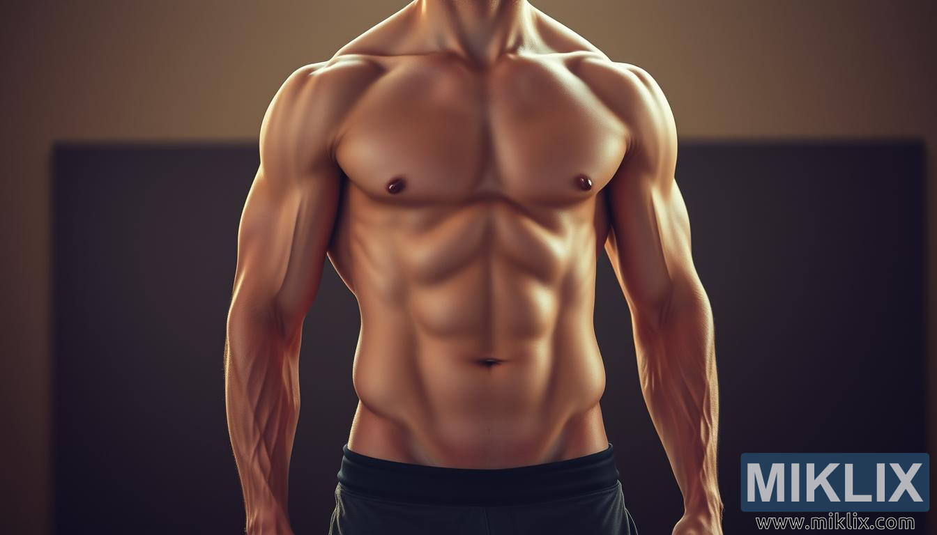 ಬೀಟಾ ಅಲನೈನ್ ಪೂರಕದ ಫಿಟ್ನೆಸ್, ಚೈತನ್ಯ ಮತ್ತು ಪ್ರಯೋಜನಗಳನ್ನು ಒತ್ತಿಹೇಳುತ್ತಾ, ವ್ಯಾಖ್ಯಾನಿಸಲಾದ ಎಬಿಎಸ್ ಮತ್ತು ತೋಳುಗಳನ್ನು ಹೈಲೈಟ್ ಮಾಡುವ ಸ್ನಾಯುವಿನ ಪುರುಷನ ಹತ್ತಿರದ ನೋಟ.