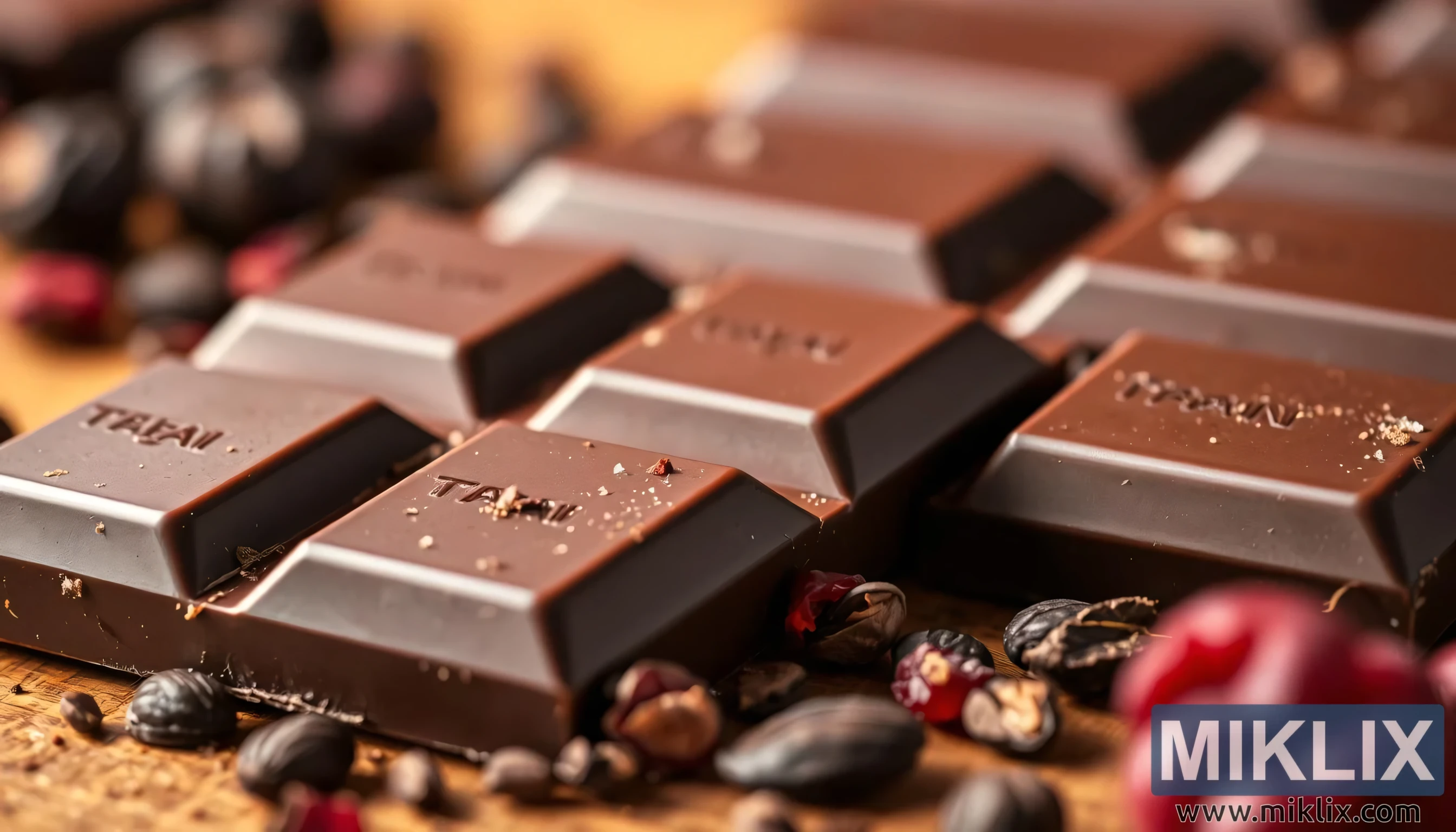 ಅಂತಿಮವಾಗಿ, ಈ ದೃಶ್ಯವು ಕೇವಲ ಹಸಿವನ್ನುಂಟುಮಾಡುವುದಕ್ಕಿಂತ ಹೆಚ್ಚಿನದನ್ನು ನೀಡುತ್ತದೆ - ಇದು ಸಂವೇದನಾ ಆನಂದ ಮತ್ತು ಸಮಗ್ರ ಯೋಗಕ್ಷೇಮ ಎರಡನ್ನೂ ಗೌರವಿಸುವ ಜೀವನಶೈಲಿಯನ್ನು ಪ್ರಚೋದಿಸುತ್ತದೆ. ಹೊಳಪುಳ್ಳ ಮೇಲ್ಮೈ ಮತ್ತು ಎಚ್ಚರಿಕೆಯಿಂದ ವ್ಯಾಖ್ಯಾನಿಸಲಾದ ರೇಖೆಗಳನ್ನು ಹೊಂದಿರುವ ಚಾಕೊಲೇಟ್ ಬಾರ್ ಚಿತ್ರದ ನಾಯಕ, ಆದರೆ ಅದು ಅದರ ಸಂದರ್ಭದಿಂದ ಸಮೃದ್ಧವಾಗಿದೆ: ಹಳ್ಳಿಗಾಡಿನ ಕೋಕೋ ನಿಬ್ಸ್, ರೋಮಾಂಚಕ ಹಣ್ಣುಗಳು, ಅದರ ಕೆಳಗೆ ಬೆಚ್ಚಗಿನ ಮರದ ಟೋನ್ಗಳು ಮತ್ತು ಎಲ್ಲವನ್ನೂ ಶಾಂತ ಐಷಾರಾಮಿಯಲ್ಲಿ ಮುಳುಗಿಸುವ ಮೃದುವಾದ ಬೆಳಕು. ಭೋಗ ಮತ್ತು ಪೋಷಣೆ, ಕಲಾತ್ಮಕತೆ ಮತ್ತು ಅಧಿಕೃತತೆಯ ಈ ಪರಸ್ಪರ ಕ್ರಿಯೆಯು ಚಾಕೊಲೇಟ್ ಅನ್ನು ಸಿಹಿ ತಿಂಡಿಗಿಂತ ಹೆಚ್ಚಿನದಾಗಿ ಪರಿವರ್ತಿಸುತ್ತದೆ - ಇದು ಸಮತೋಲನದ ಸಂಕೇತವಾಗುತ್ತದೆ, ಪ್ರಕೃತಿ ಒದಗಿಸುವ ಆರೋಗ್ಯಕರ ಉಡುಗೊರೆಗಳನ್ನು ಗುರುತಿಸುವಾಗ ಜೀವನದ ಉತ್ತಮ ಕ್ಷಣಗಳಲ್ಲಿ ಸಂತೋಷವನ್ನು ತೆಗೆದುಕೊಳ್ಳುವ ಸಾಮರ್ಥ್ಯವಾಗುತ್ತದೆ.