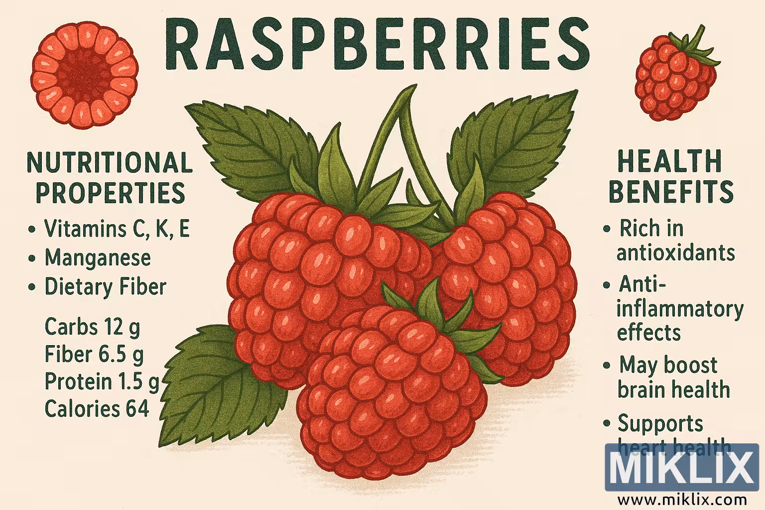 ಚಿತ್ರ: ರಾಸ್್ಬೆರ್ರಿಸ್ ಪೌಷ್ಟಿಕಾಂಶ ಮತ್ತು ಆರೋಗ್ಯ ಪ್ರಯೋಜನಗಳ ವಿವರಣೆ