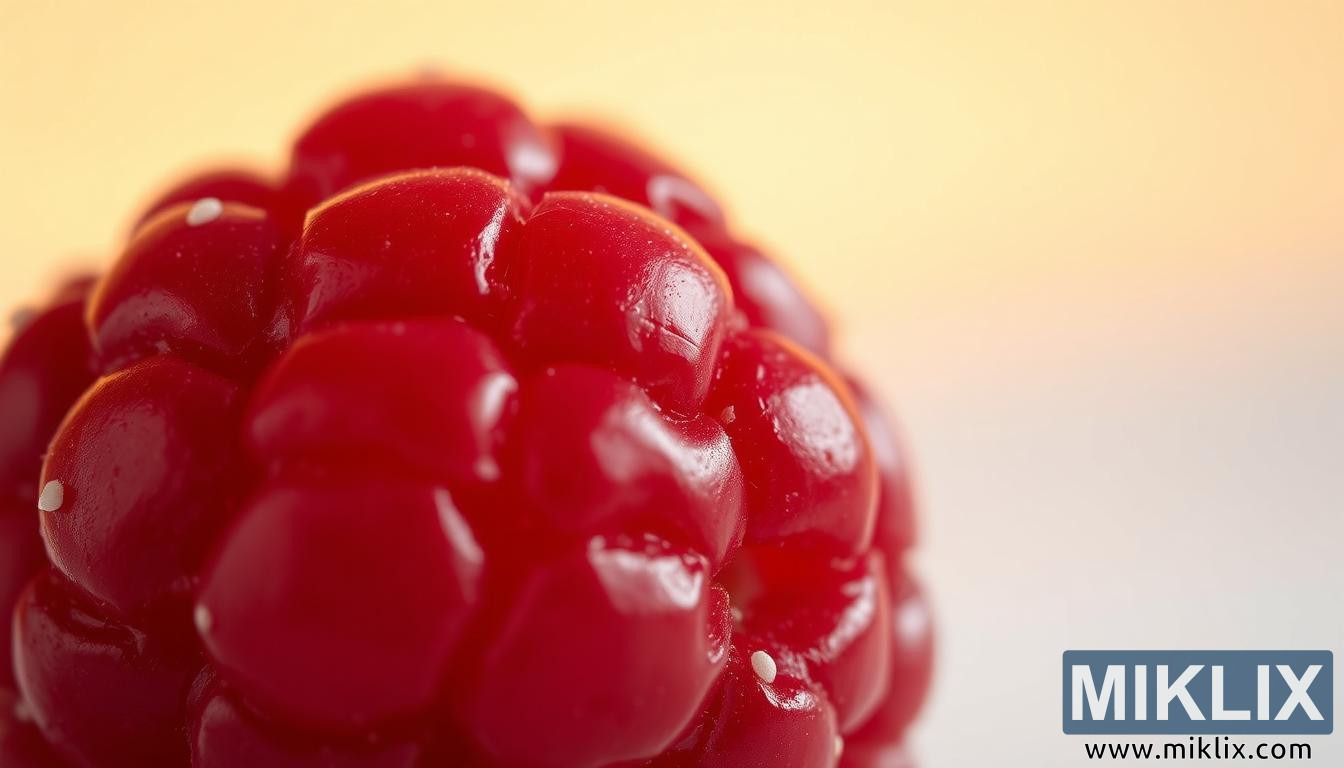ಒಟ್ಟಾರೆಯಾಗಿ, ಈ ಚಿತ್ರವು ಕೇವಲ ಛಾಯಾಚಿತ್ರದ ಪಾತ್ರವನ್ನು ಮೀರಿಸುತ್ತದೆ. ಇದು ಸೂಕ್ಷ್ಮ ಮಟ್ಟದಲ್ಲಿ ನೈಸರ್ಗಿಕ ಸೌಂದರ್ಯದ ಆಚರಣೆಯಾಗುತ್ತದೆ, ಪ್ರಕೃತಿಯ ಚಿಕ್ಕ ಸೃಷ್ಟಿಗಳನ್ನು ಸಹ ರಚಿಸುವ ಸಂಕೀರ್ಣ ರಚನೆಗಳ ಧ್ಯಾನವಾಗುತ್ತದೆ. ತುಂಬಾ ಹತ್ತಿರದಿಂದ ಜೂಮ್ ಮಾಡುವ ಮೂಲಕ, ಛಾಯಾಚಿತ್ರವು ರಾಸ್ಪ್ಬೆರಿಯನ್ನು ಮಾತ್ರವಲ್ಲದೆ ಅದು ಹೊಂದಿರುವ ಸಂಕೇತವನ್ನೂ ಸಹ ಪ್ರಶಂಸಿಸಲು ವೀಕ್ಷಕರನ್ನು ಆಹ್ವಾನಿಸುತ್ತದೆ: ತಾಜಾತನ, ಆರೋಗ್ಯ ಮತ್ತು ರಾಸ್ಪ್ಬೆರಿ ಕೀಟೋನ್ಗಳಂತಹ ನೈಸರ್ಗಿಕ ಸಂಯುಕ್ತಗಳ ಭರವಸೆ. ಇದು ವೈಜ್ಞಾನಿಕ ಮಸೂರ ಮತ್ತು ಕಲಾಕೃತಿಯಾಗಿದೆ, ವಾತಾವರಣದೊಂದಿಗೆ ವಿವರಗಳನ್ನು ಸಂಯೋಜಿಸುತ್ತದೆ ಮತ್ತು ರಾಸ್ಪ್ಬೆರಿಯನ್ನು ಆಹಾರಕ್ಕಿಂತ ಹೆಚ್ಚಾಗಿ ಪ್ರಸ್ತುತಪಡಿಸುತ್ತದೆ - ಒಂದೇ, ವಿಕಿರಣ ಹಣ್ಣಿನಲ್ಲಿ ಬಟ್ಟಿ ಇಳಿಸಿದ ಜೀವನದ ನೈಸರ್ಗಿಕ ಶ್ರೀಮಂತಿಕೆಯ ಲಾಂಛನವಾಗಿ.