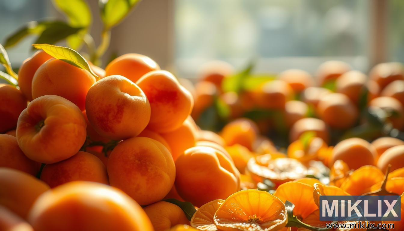 Vibrant apricots with sunlight glow