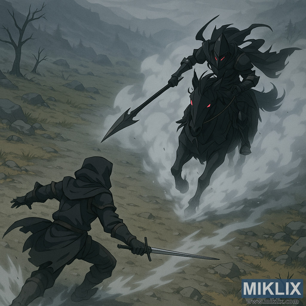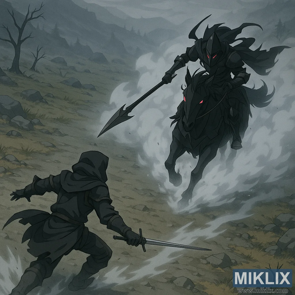 ಒಟ್ಟಾರೆಯಾಗಿ, ಉನ್ನತ, ಕೋನೀಯ ದೃಷ್ಟಿಕೋನವು ಈ ಮುಖಾಮುಖಿಯನ್ನು ಯುದ್ಧತಂತ್ರದ ಸ್ನ್ಯಾಪ್ಶಾಟ್ ಆಗಿ ಪರಿವರ್ತಿಸುತ್ತದೆ, ವೀಕ್ಷಕರು ಅನಿಮೇಟೆಡ್ ಅನುಕ್ರಮದ ಪ್ರಮುಖ ಚೌಕಟ್ಟನ್ನು ವೀಕ್ಷಿಸುತ್ತಿರುವಂತೆ. ಟಾರ್ನಿಶ್ಡ್ನ ಹತಾಶ ಪಕ್ಕಕ್ಕೆ ಹೆಜ್ಜೆ, ರಾತ್ರಿಯ ಅಶ್ವದಳದ ತಡೆಯಲಾಗದ ಆವೇಗ ಮತ್ತು ಅವೆಲ್ಲವನ್ನೂ ಬಂಧಿಸುವ ಸುತ್ತುತ್ತಿರುವ ಮಂಜು ತುರ್ತು ಮತ್ತು ಸನ್ನಿಹಿತ ಪರಿಣಾಮದ ಪ್ರಜ್ಞೆಯನ್ನು ಸೃಷ್ಟಿಸುತ್ತದೆ. ಇದು ಬದುಕುಳಿಯುವಿಕೆ ಮತ್ತು ಸರ್ವನಾಶದ ನಡುವಿನ ಹೆಪ್ಪುಗಟ್ಟಿದ ಕ್ಷಣವಾಗಿದೆ - ಮೇಲಿನಿಂದ ಸೆರೆಹಿಡಿಯಲಾಗಿದೆ, ಅಲ್ಲಿ ಅಪಾಯದ ಜ್ಯಾಮಿತಿಯನ್ನು ಫರ್ಬಿಡನ್ ಲ್ಯಾಂಡ್ಸ್ನ ಕಲ್ಲಿನ ಕ್ಯಾನ್ವಾಸ್ನಲ್ಲಿ ಬಹಿರಂಗಪಡಿಸಲಾಗಿದೆ.