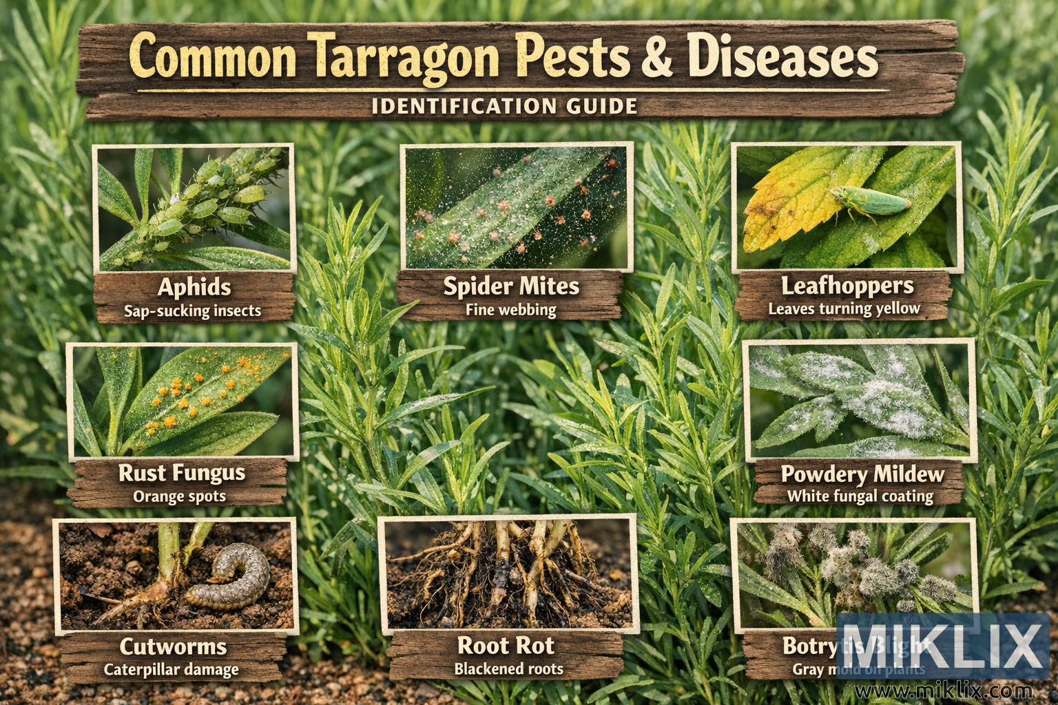 ಚಿತ್ರ: ಸಾಮಾನ್ಯ ಟ್ಯಾರಗನ್ ಕೀಟಗಳು ಮತ್ತು ರೋಗಗಳನ್ನು ಗುರುತಿಸುವ ಮಾರ್ಗದರ್ಶಿ